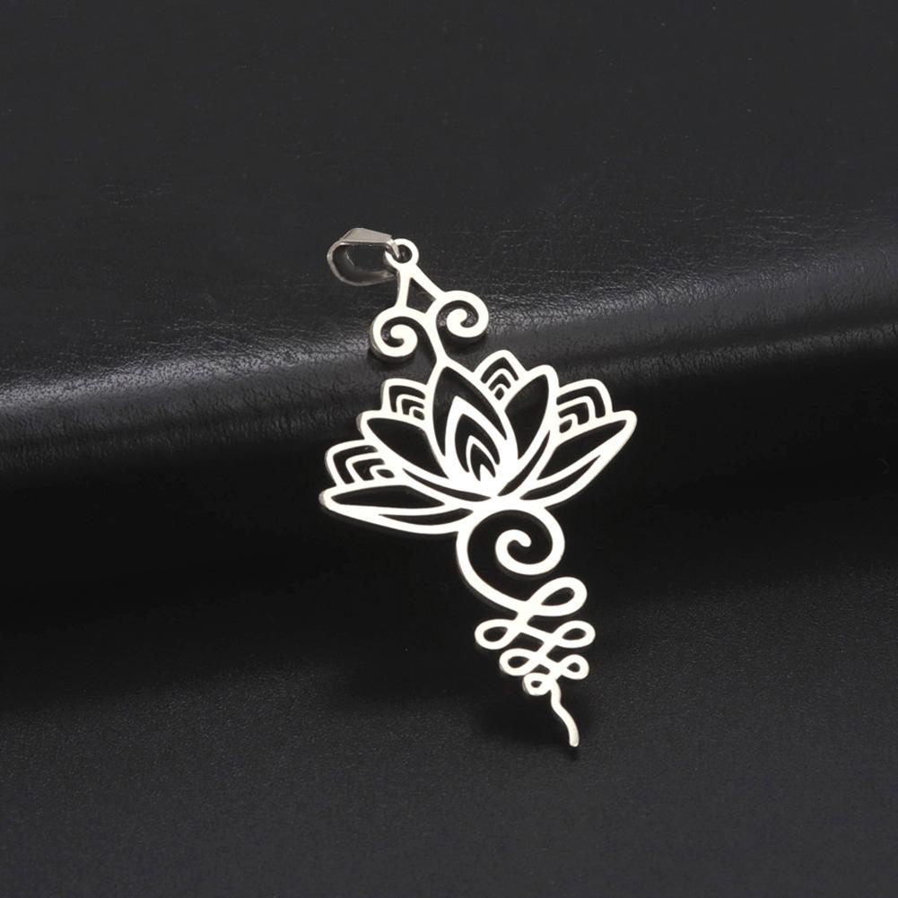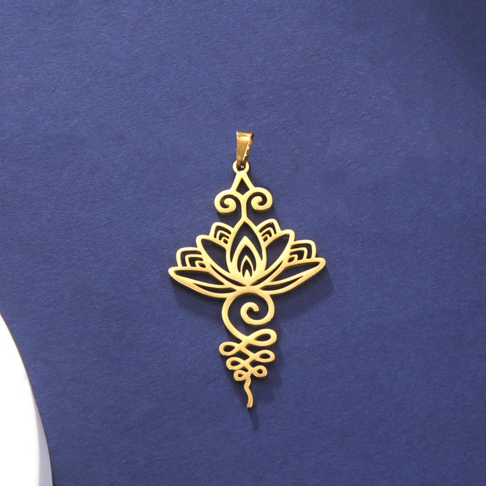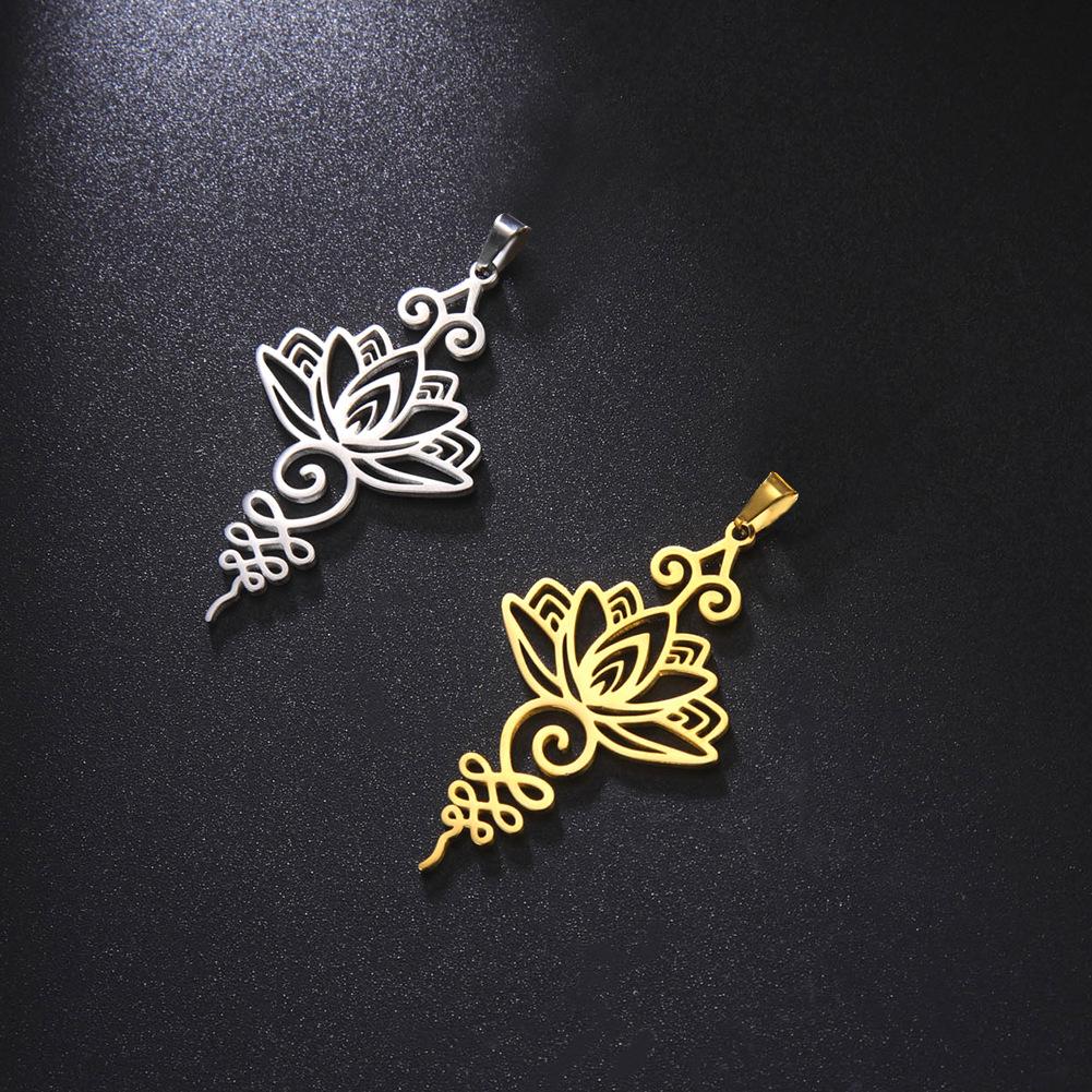 En stock, venta al por mayor, accesorios de acero inoxidable, personalidad, oro de 18 quilates, colgante de loto hueco de acero inoxidable, accesorios de joyería DIY hechos a mano