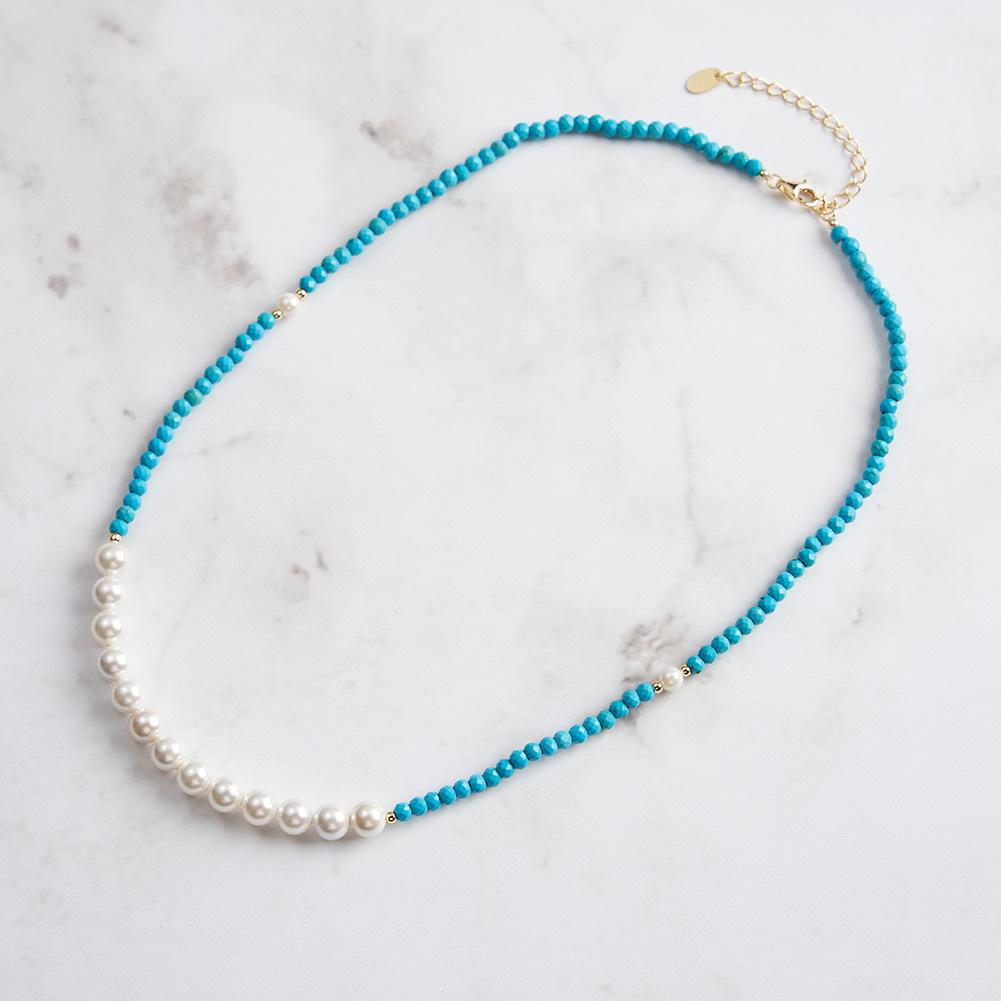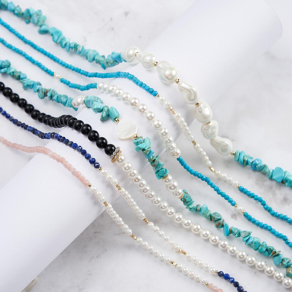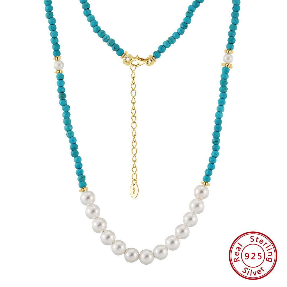 Joyería de Plata Yunguli Joyería de Venta Caliente Collar de Perla de Imitación Barroca Turquesa Cadena Clavícula Estilo Bohemio para Mujeres