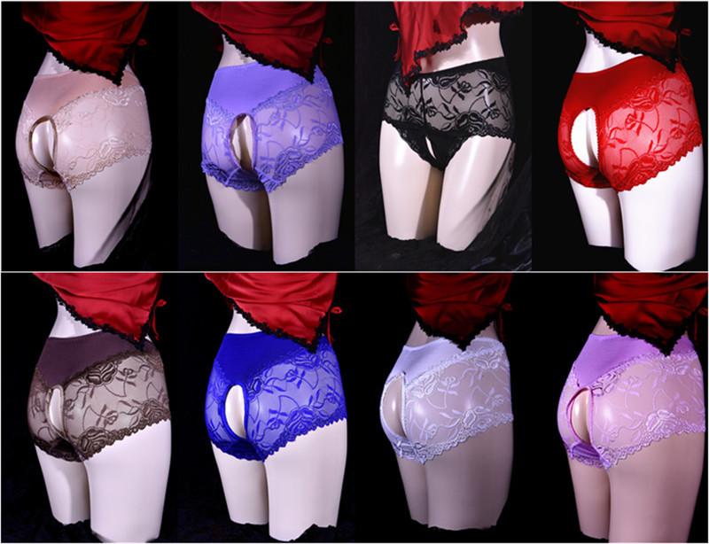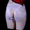 Tanga de encaje transparente con entrepierna abierta para mujer, lencería sexy, tentación, pantalones cortos para parejas de talla grande