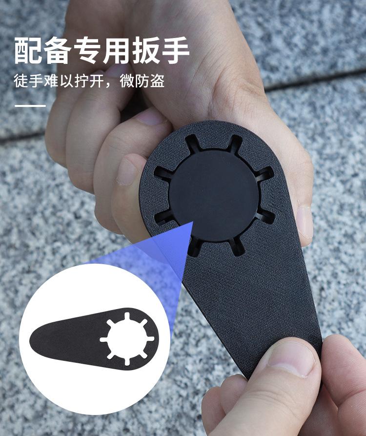 3. El producto tiene un diseño de apariencia único, la forma estilo OVNI es moderna y genial, equipado con una llave especial que no es fácil de torcer con las manos desnudas, y la pegatina adhesiva se puede pegar en lugares sin magnetismo. El producto es micro antirrobo y a prueba de salpicaduras