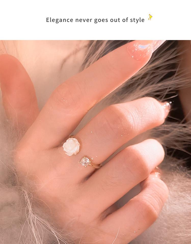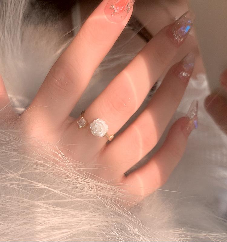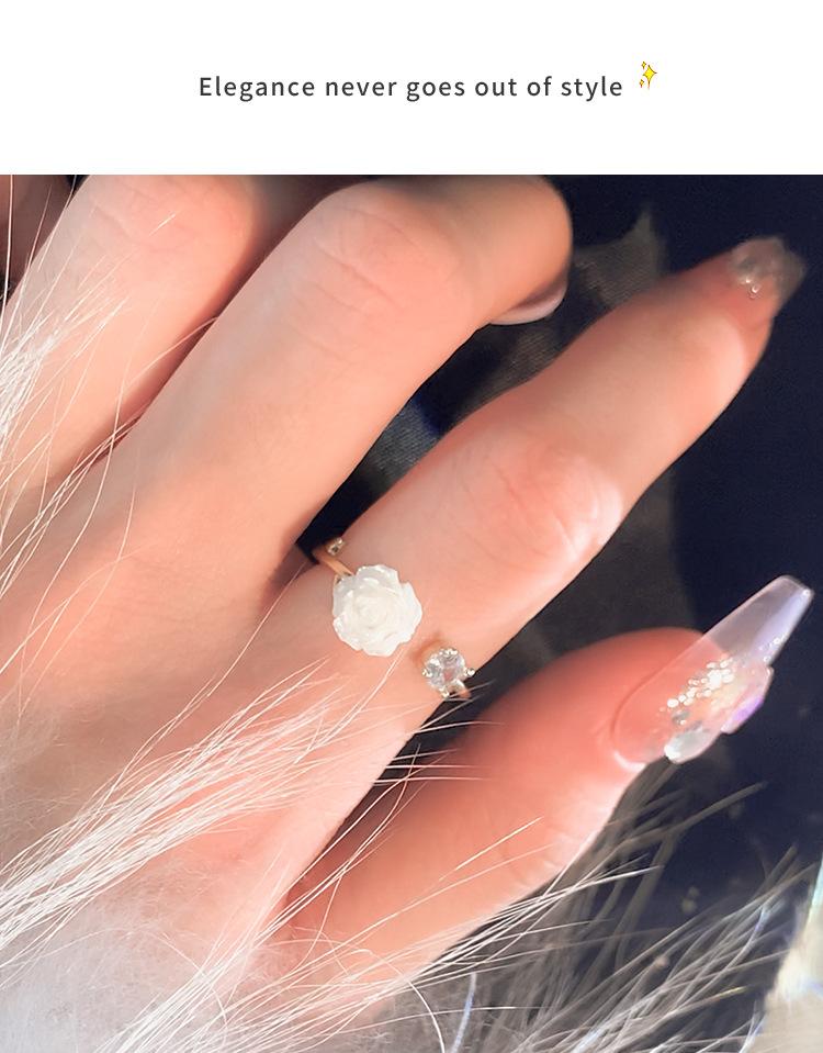 Anillo Abierto Camelia Diseño Nicho para Mujer Lujo Ligero de Alta Gama Anillo de Cola Anillo para Dedo de Comida Anillo 2024 Nueva Moda