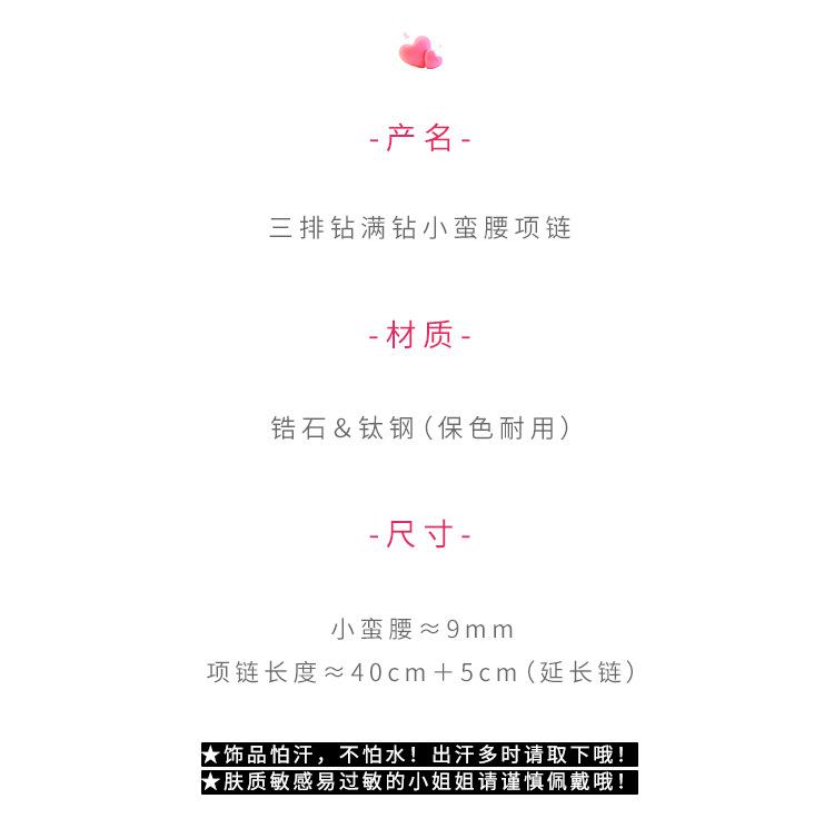 Three-row Diamond full diamond small waist necklace [gold]-titanium steel
