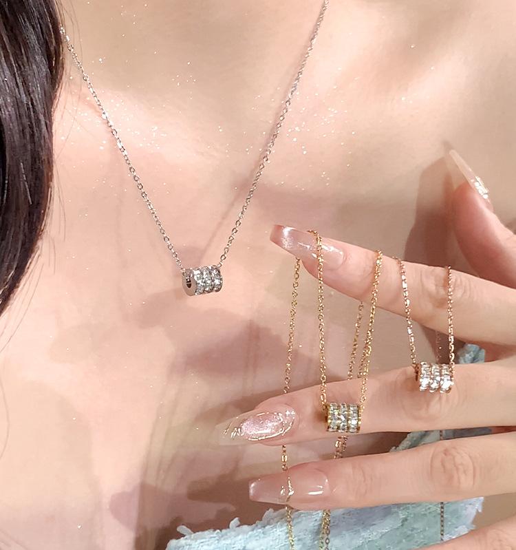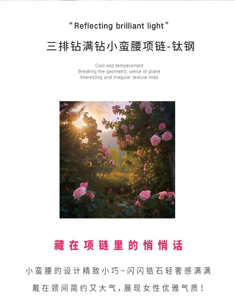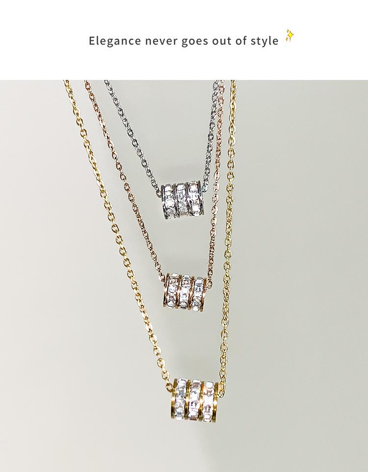 Three-row Diamond full diamond small waist necklace [rose gold]-titanium steel