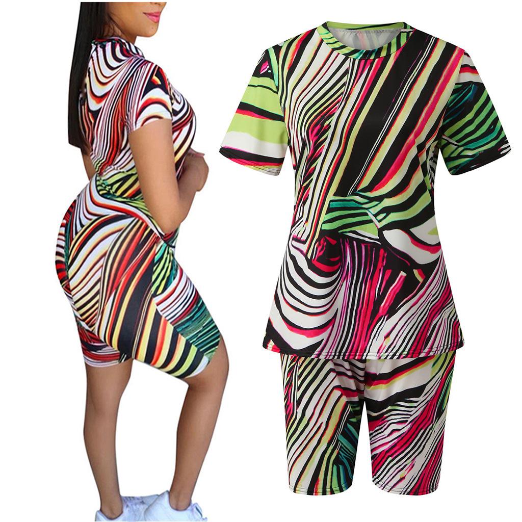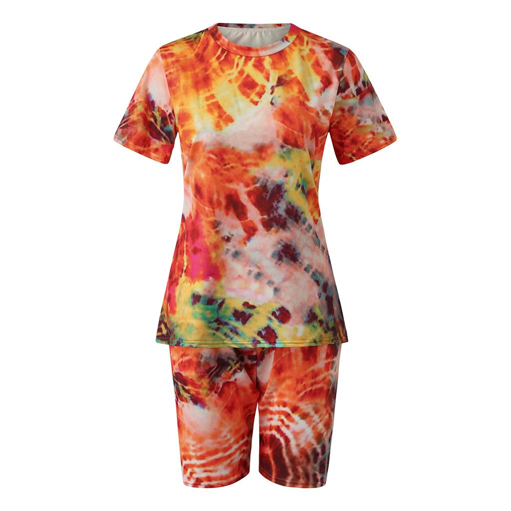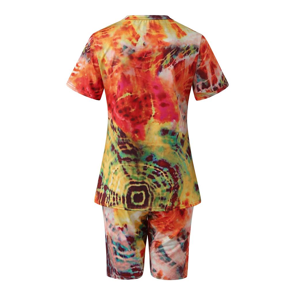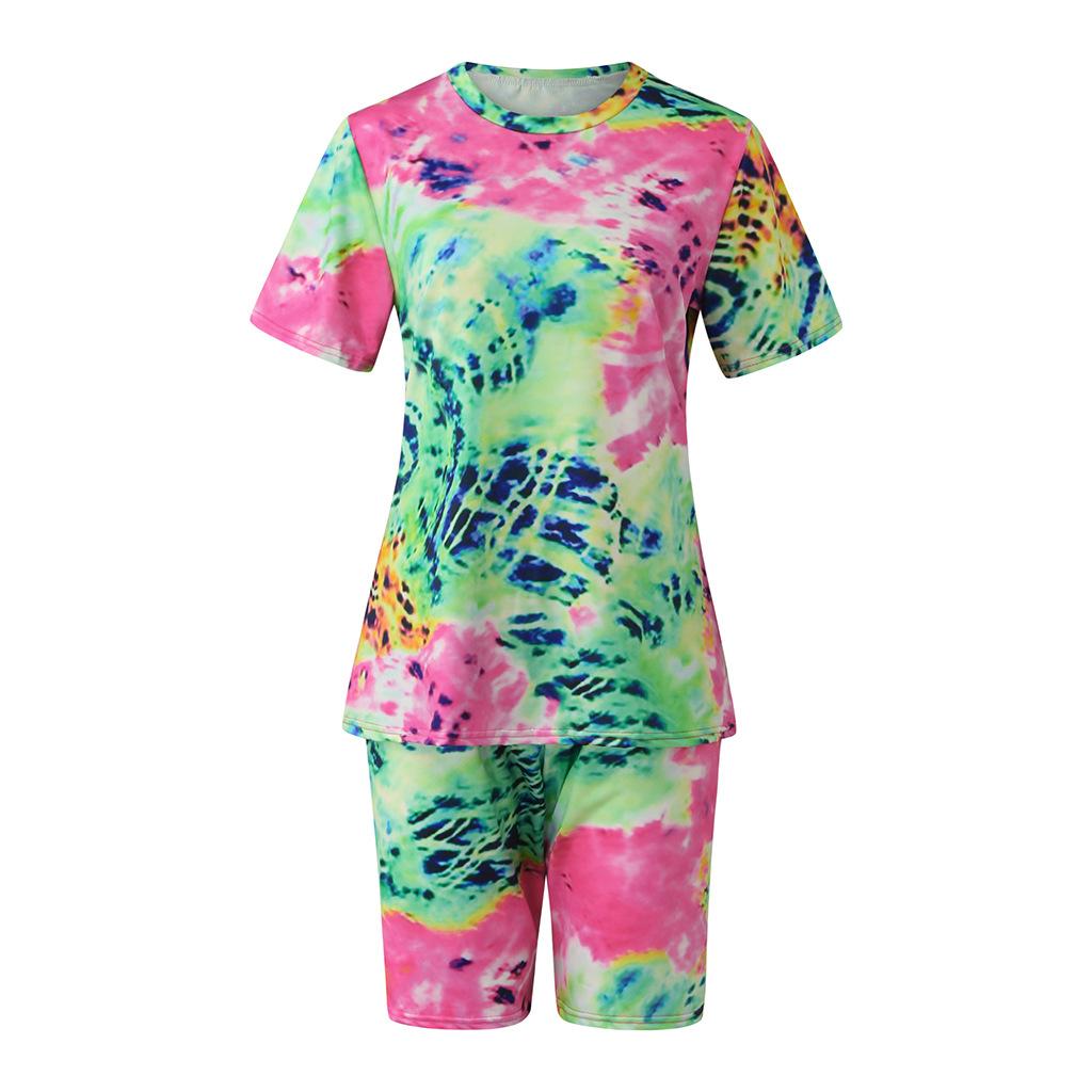 Conjuntos casuales de estilo europeo y americano de 2025, de cuello redondo y manga corta con shorts, ropa para el hogar, estampados digitales, en stock