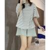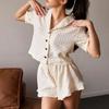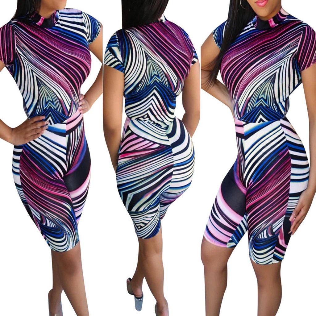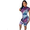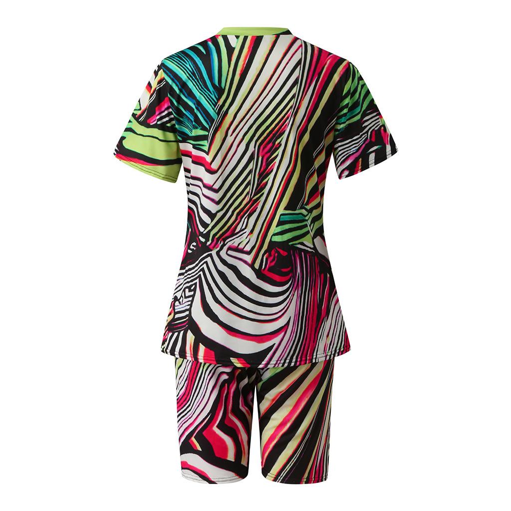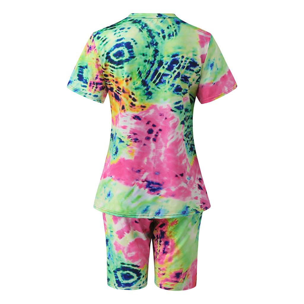Conjuntos casuales de estilo europeo y americano de 2025, de cuello redondo y manga corta con shorts, ropa para el hogar, estampados digitales, en stock