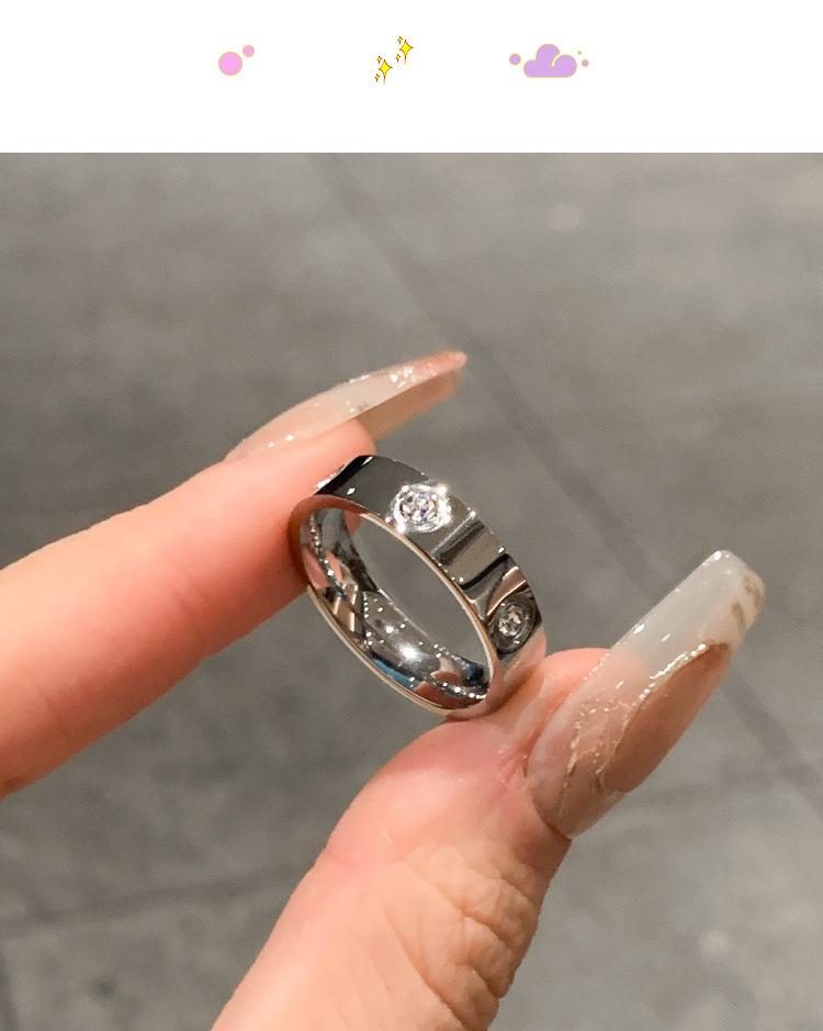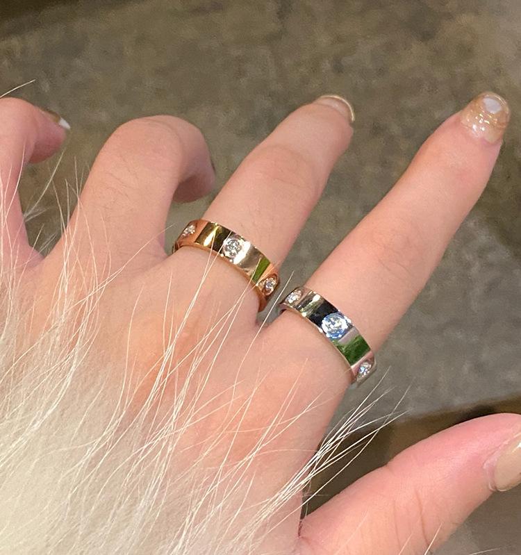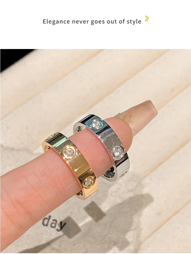 Anillo de Acero de Titanio con Zirconia de Seis Diamantes para Mujer Anillo Liso de Acero Inoxidable para Mujer Lujo Accesible Anillo de Pareja de Alta Gama Anillo para el Dedo Índice