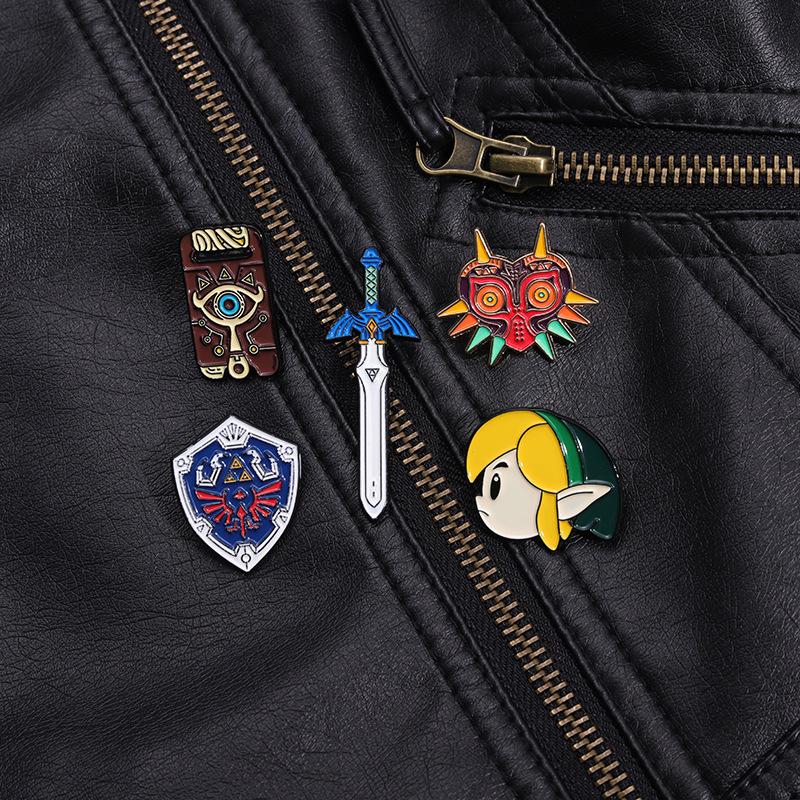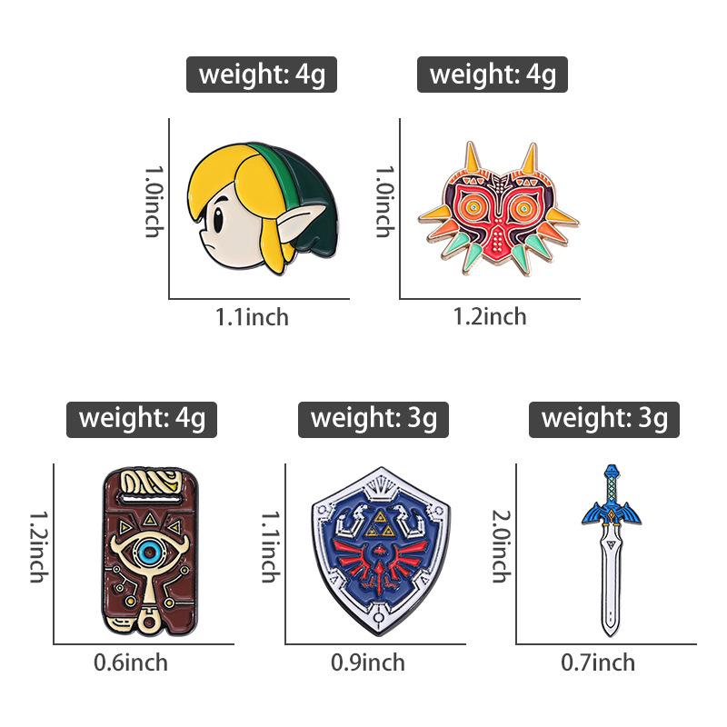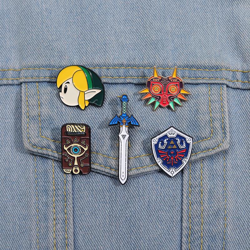 Juego de animación de dibujos animados que rodea accesorios de broche geométricos con forma de escudo/personaje/espada creativa, ramillete fijo