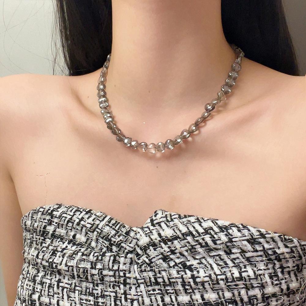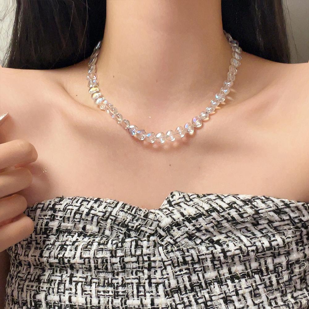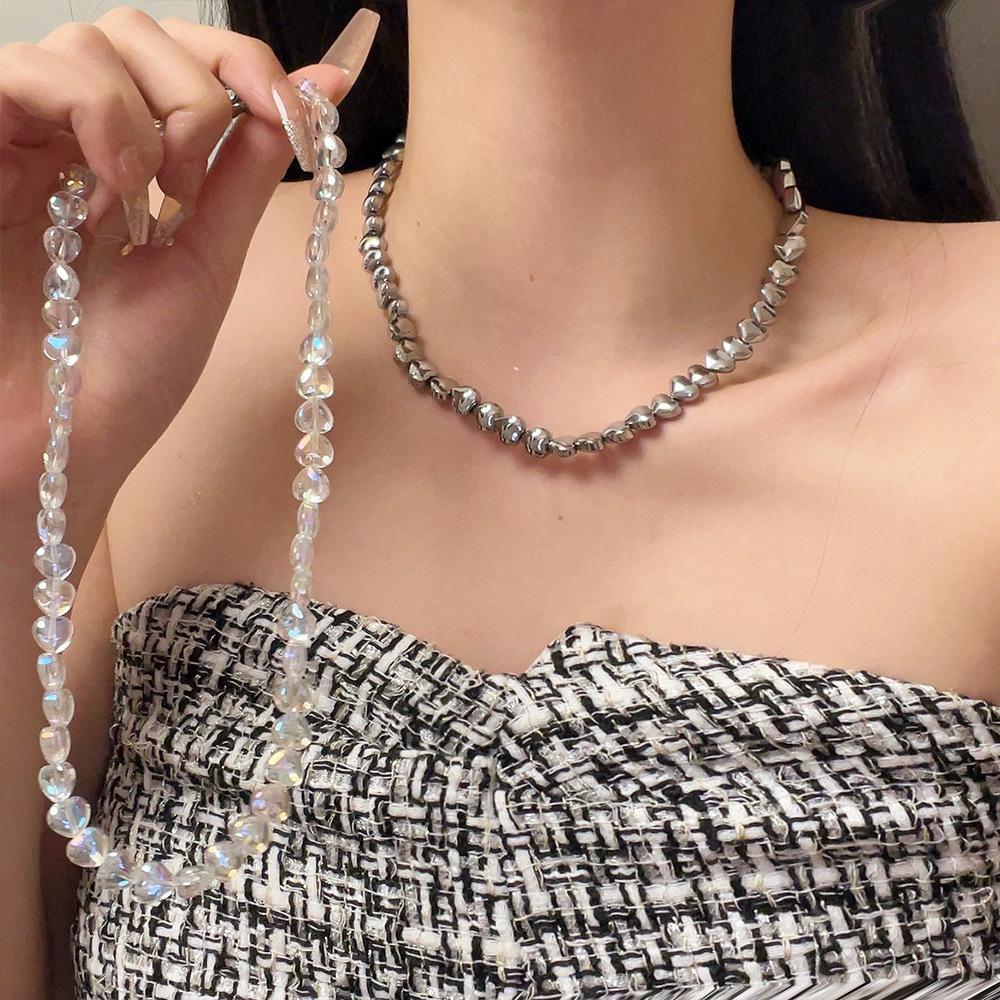 Collar de cuentas de amor transparente con diseño simple y sentido del amor para mujer, cadena de clavícula de alta calidad, elegante y combinable con todo.