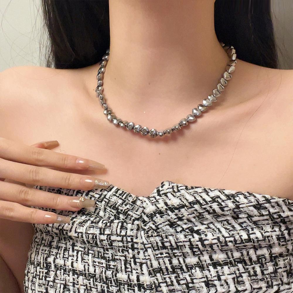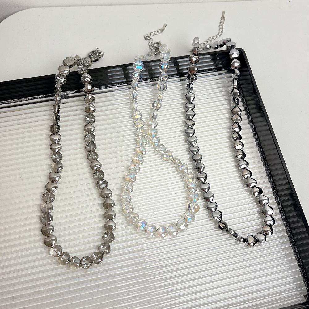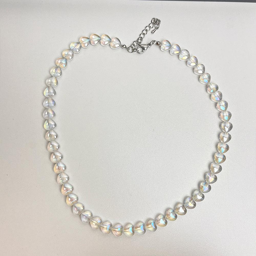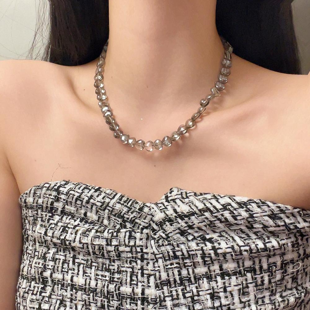 Collar de cuentas de amor transparente con diseño simple y sentido del amor para mujer, cadena de clavícula de alta calidad, elegante y combinable con todo.