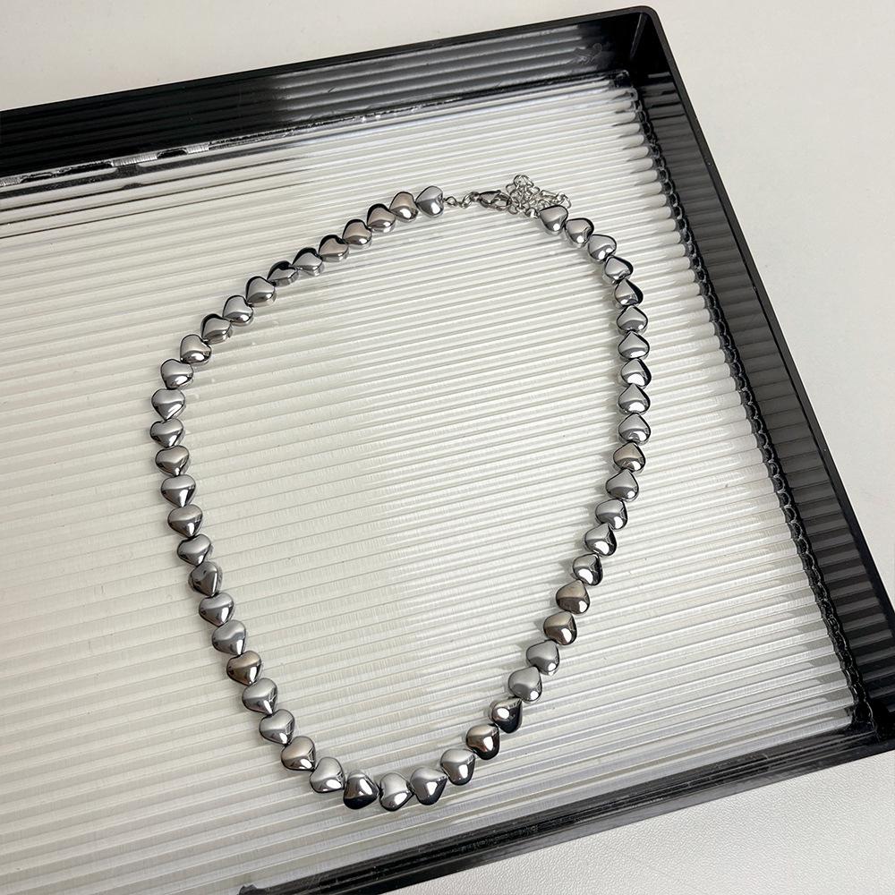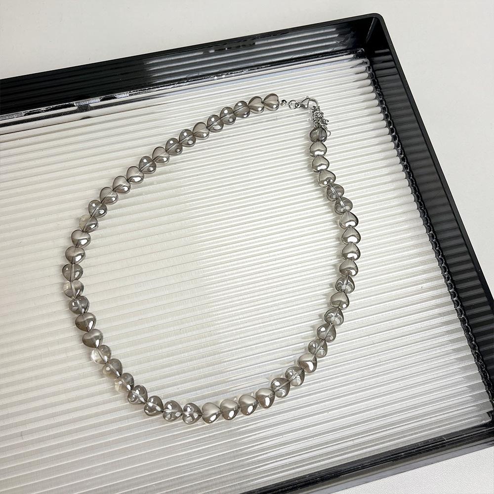 Transparent love beaded necklace Z-2470, Gray love beaded necklace Z-2469, Silver love beaded necklace Z-2468