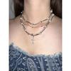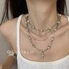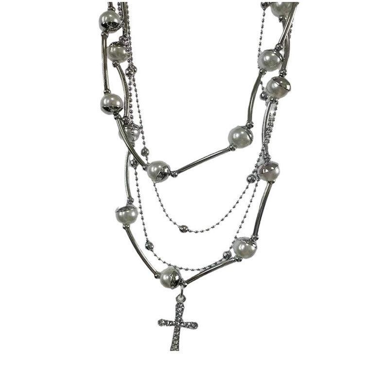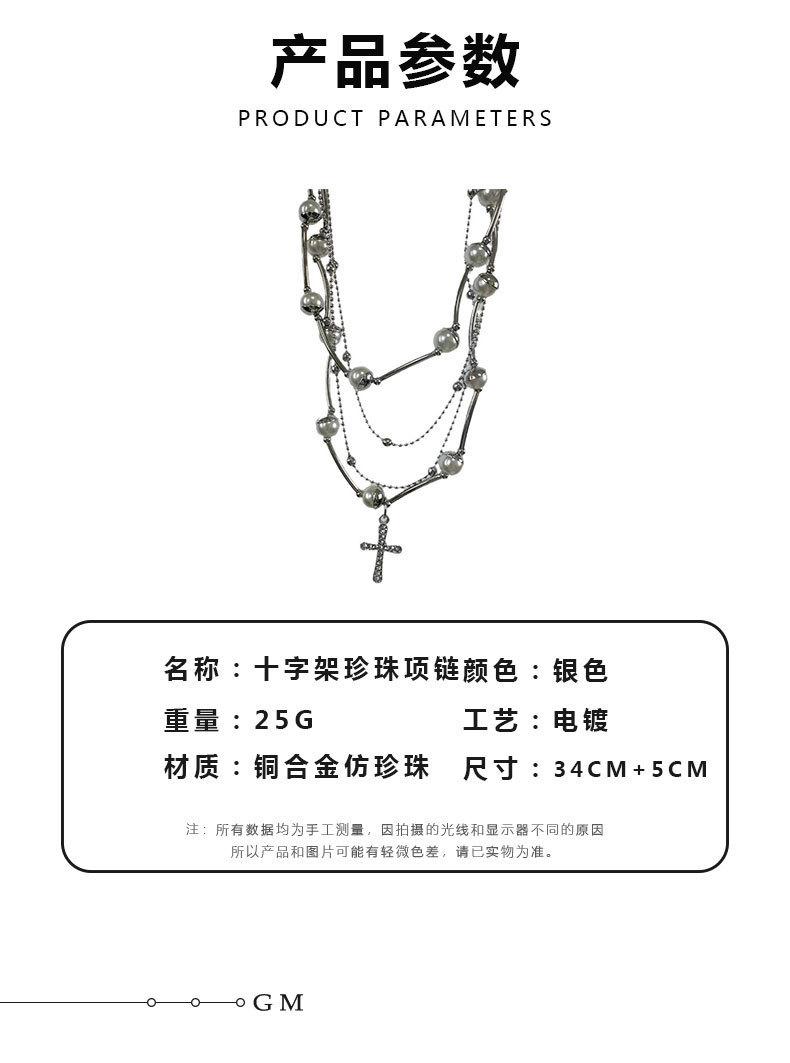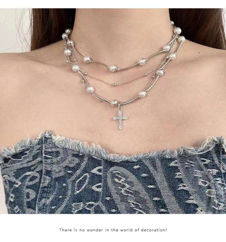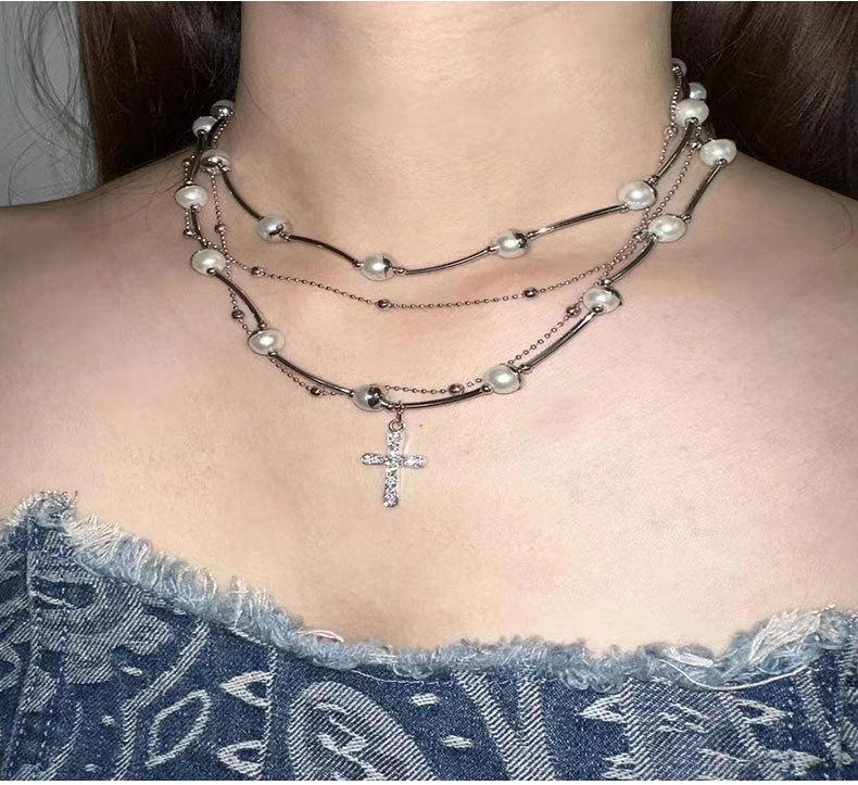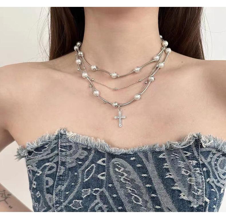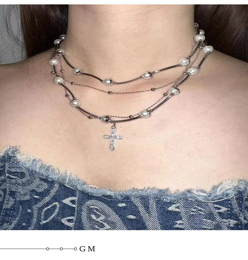 Collar de cruz de perlas multicapa, elegante y moderno, de alta gama, ligero y lujoso, con cadena de clavícula y estilo retro.