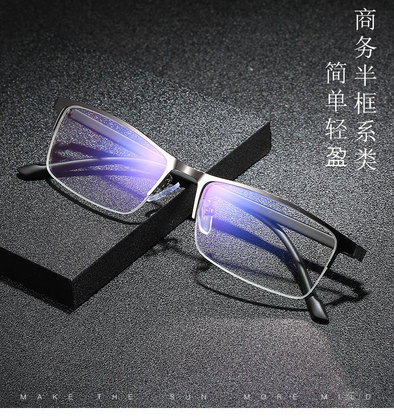 Lentes para miopía para hombre, lentes lisos anti luz azul, lentes de media montura para negocios, lentes terminados, lentes para miopía