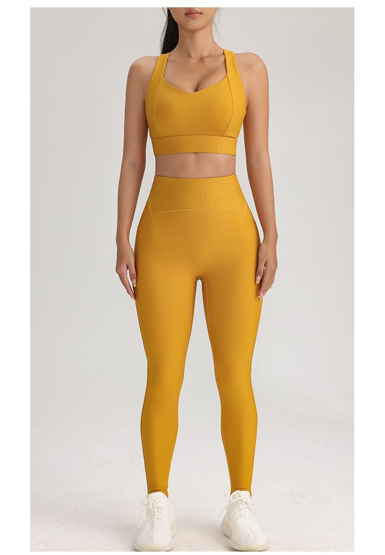 Traje deportivo de fitness para mujer, para yoga, running, secado rápido, sujetador ajustado, pantalones cortos elásticos