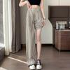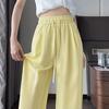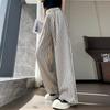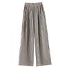 Pantalones anchos de lino y algodón a rayas para mujer, pantalón holgado de cintura alta, recto, de imitación de lino, para verano, 2024