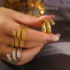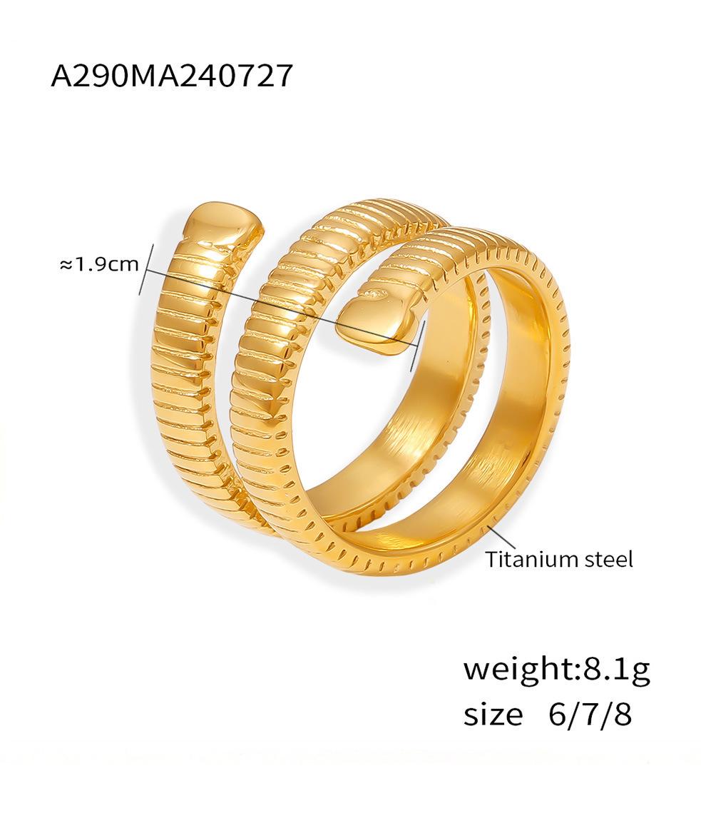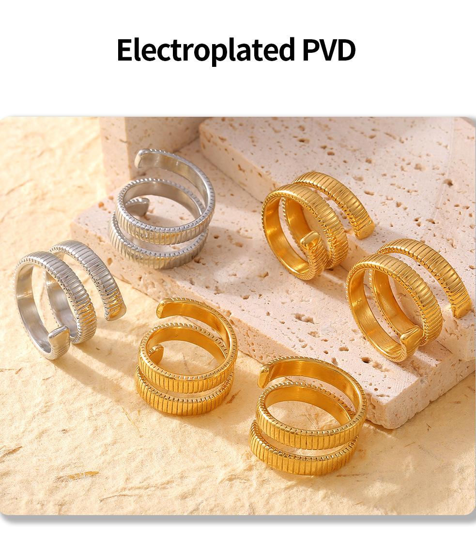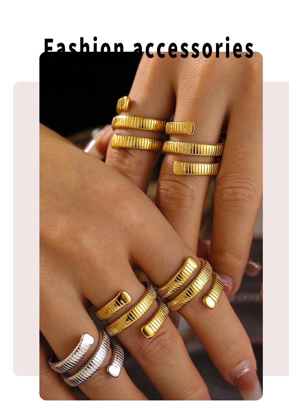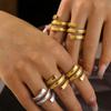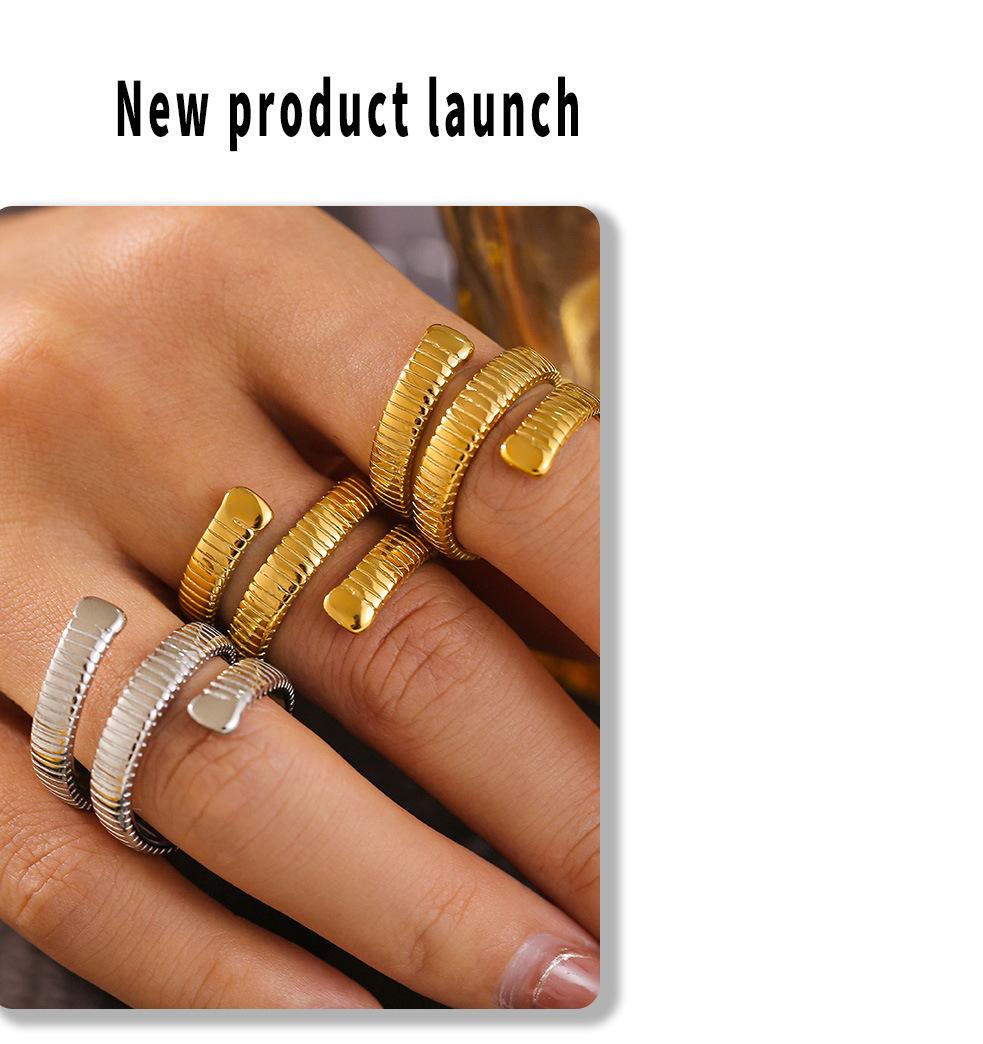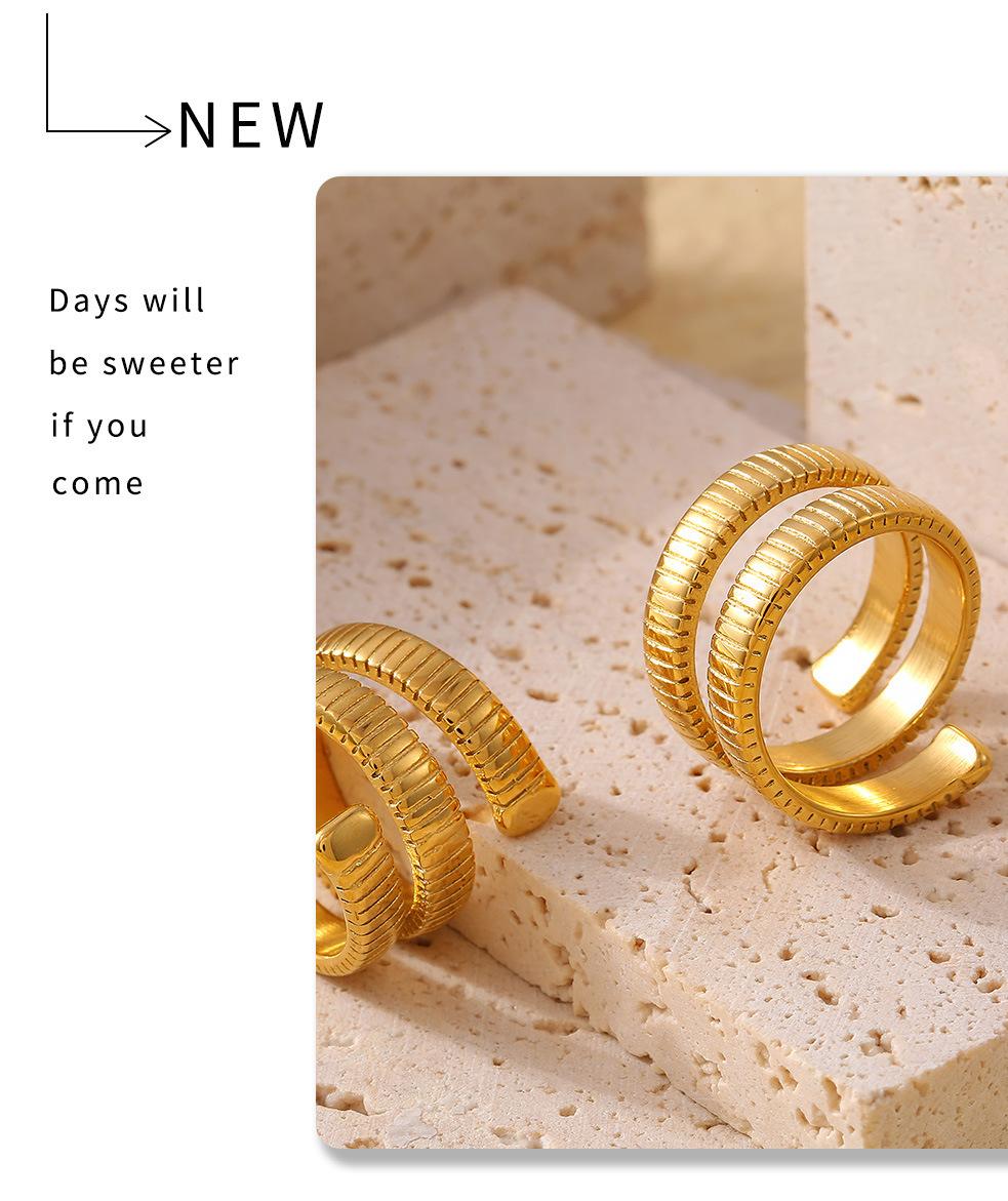 Anillo Transfronterizo Europeo y Americano Nuevo Geométrico Envolvente Roscado Acero Titanio Chapado Oro de 18K Abierto No Ajustable Venta al por Mayor