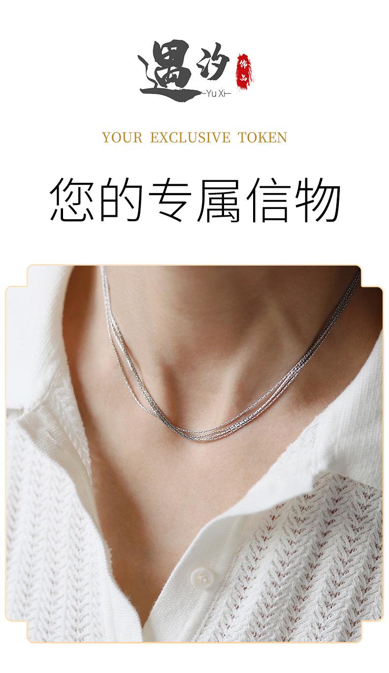 Collar de acero de titanio apilado con seda plateada multicapa de estilo francés, collar de diseño de cadena de clavícula de temperamento simple y ligero de lujo