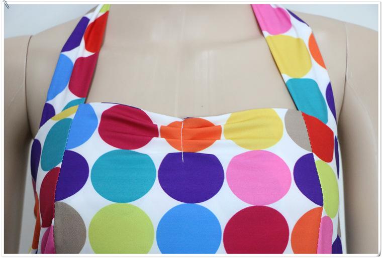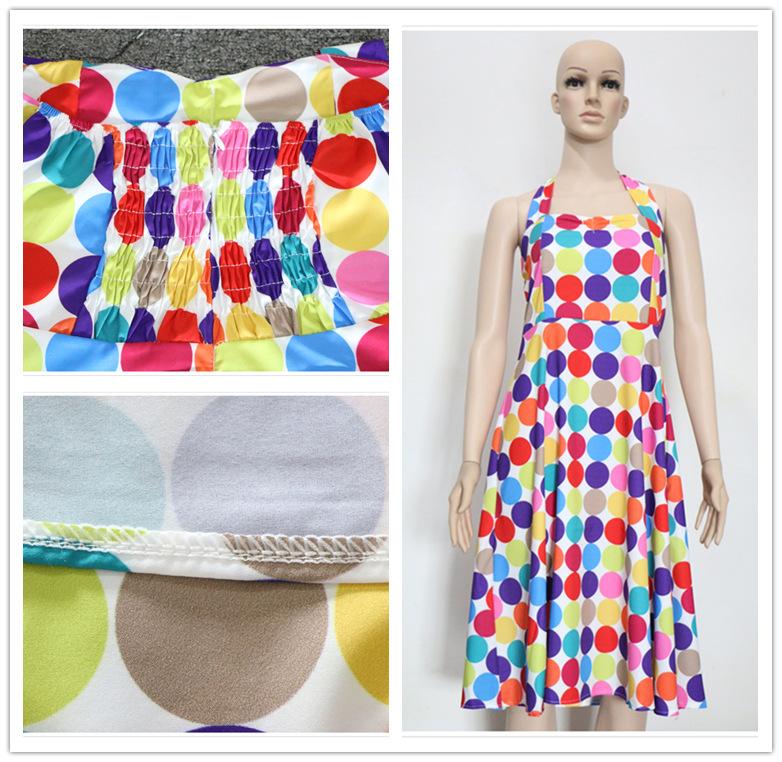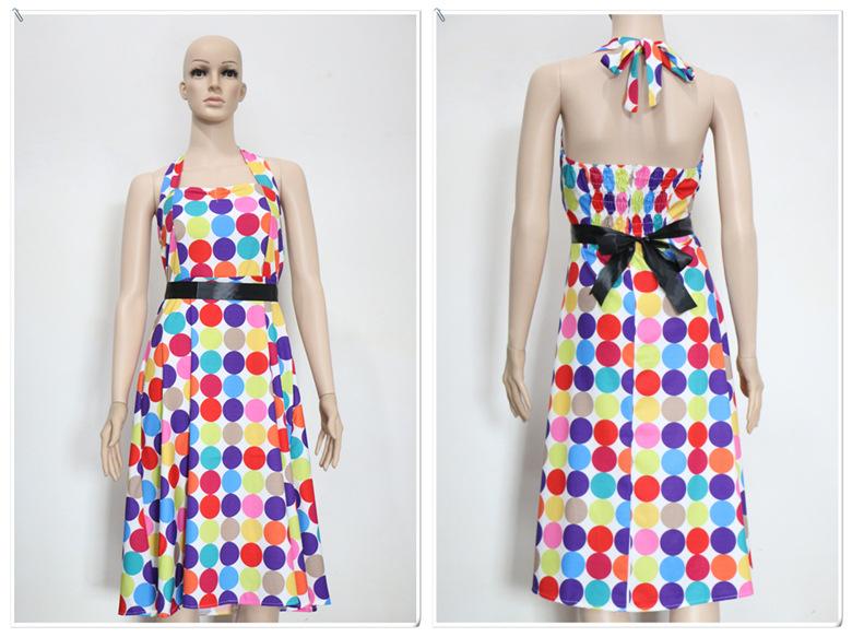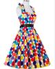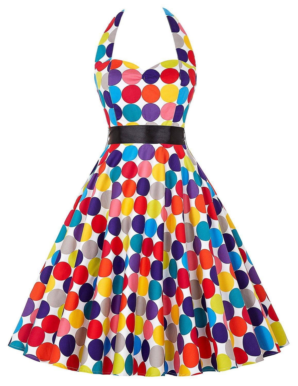Un gran número de los más vendidos de los años 50, estilo retro Hepburn, con lunares y ondas de colores, vestido de los años 50 con cintura adelgazante y gran vuelo con cinturón.