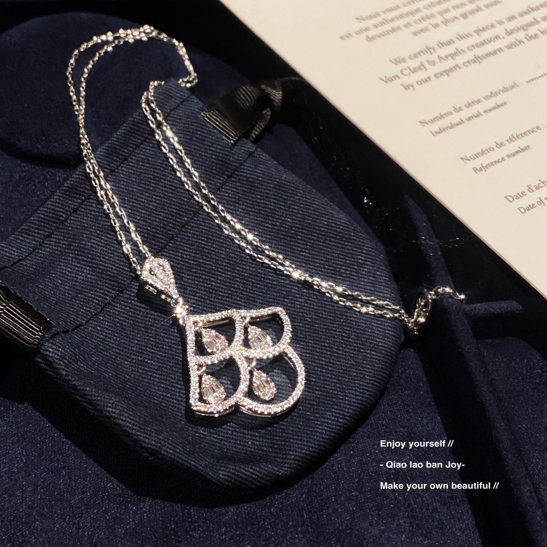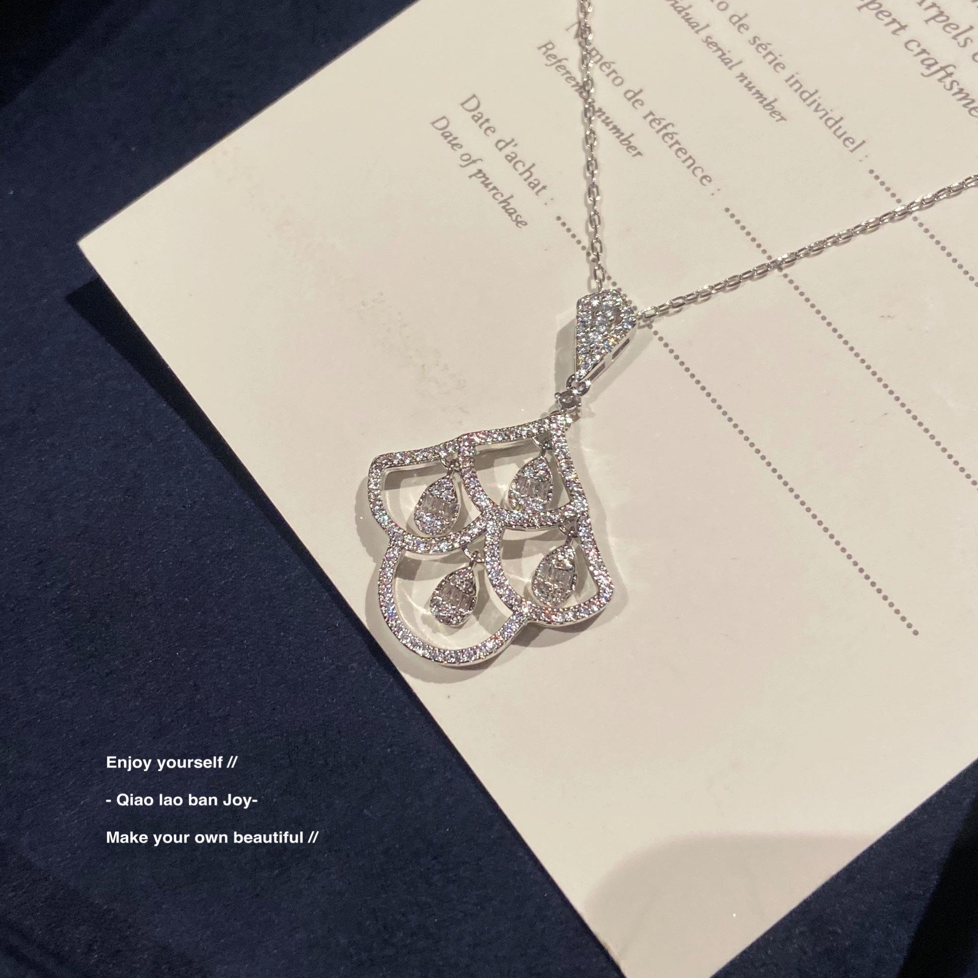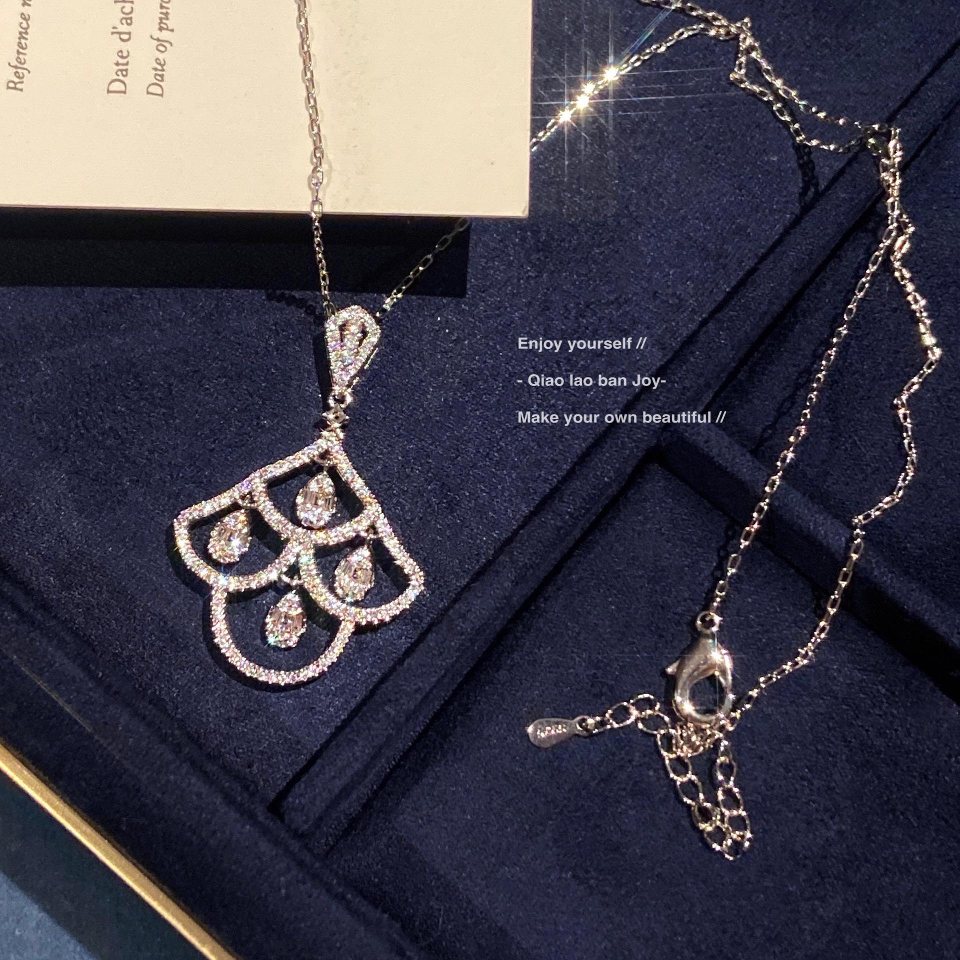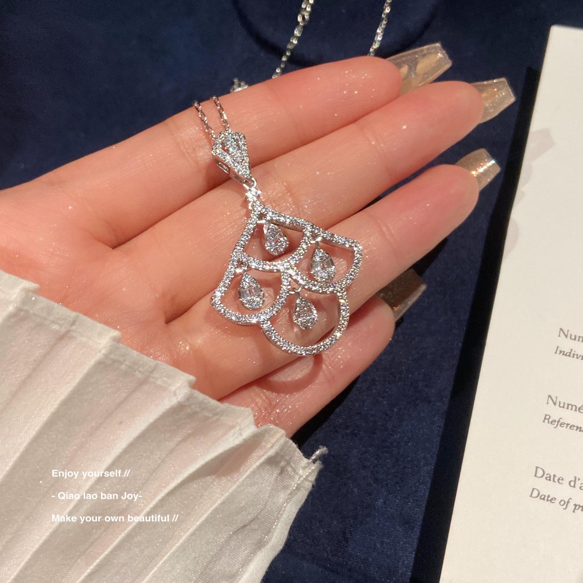 [Joe Boss Joy] Collar de abanico hueco con cadena de clavícula plateada llena de diamantes, caramelo de roca, textura pesada y simple, lujo ligero.