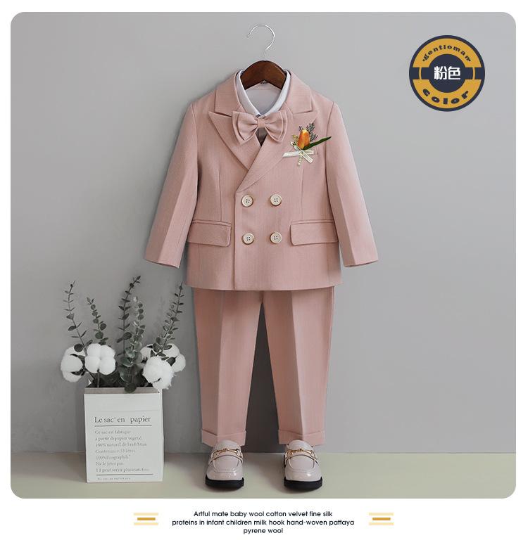 Pink suit 5-piece (jacket + waistcoat + trousers +8896 bow tie + yellow tulip corsage), Pink suit 6-piece (jac...
