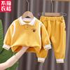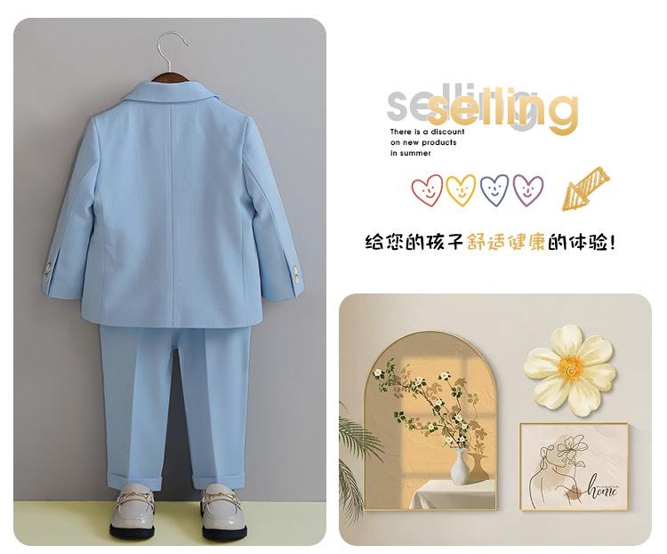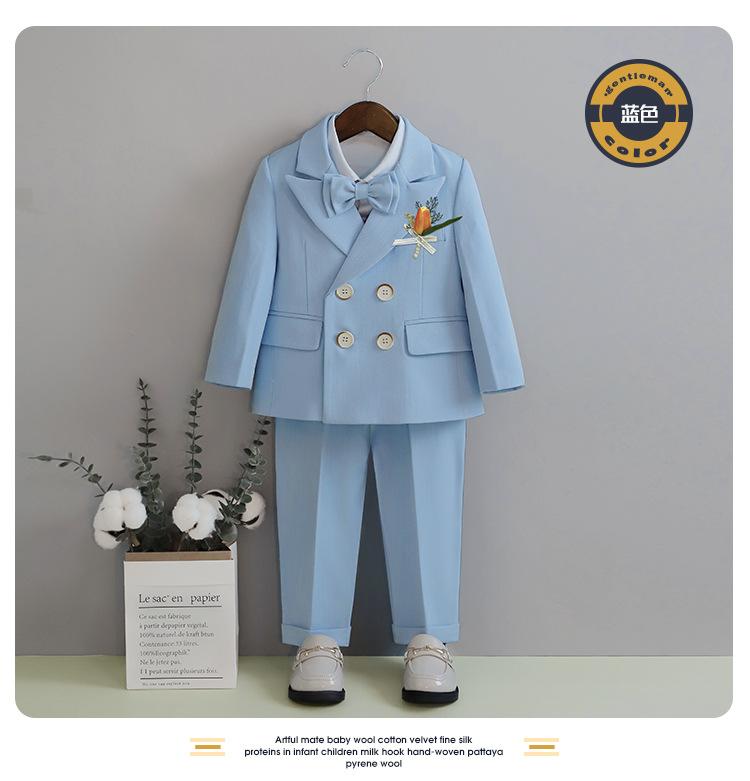 Blue jacket 5-piece (jacket + trousers + long sleeve shirt +8896 bow tie + yellow tulip corsage)