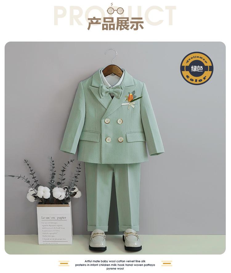 Green jacket 5-piece (jacket + trousers + long sleeve shirt +8896 bow tie + yellow tulip corsage)