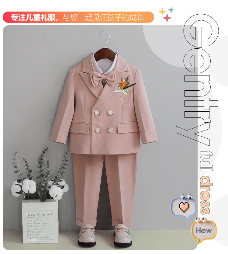 Pink jacket 5-piece (jacket + trousers + long sleeve shirt +8896 bow tie + yellow tulip corsage)