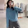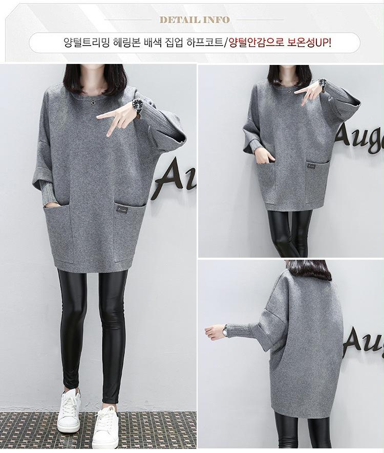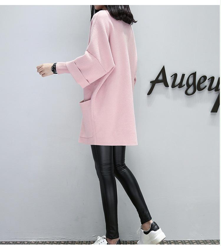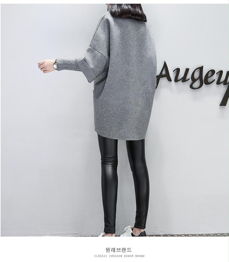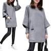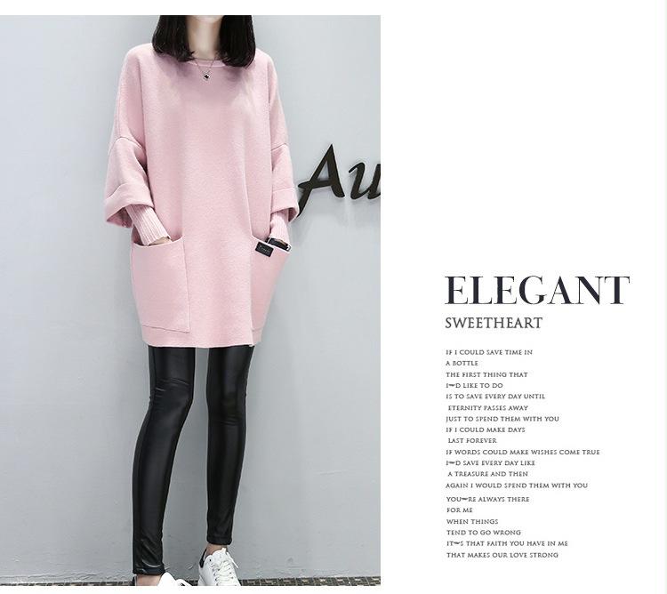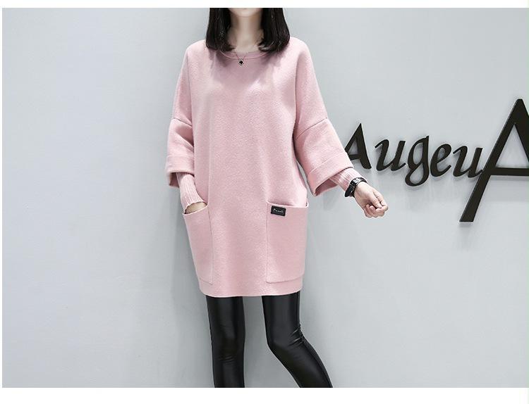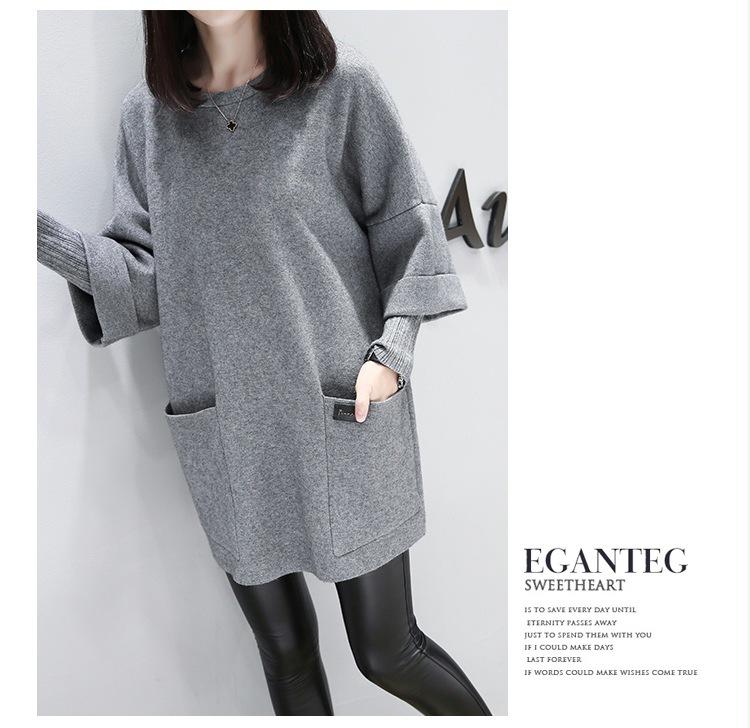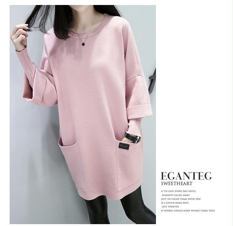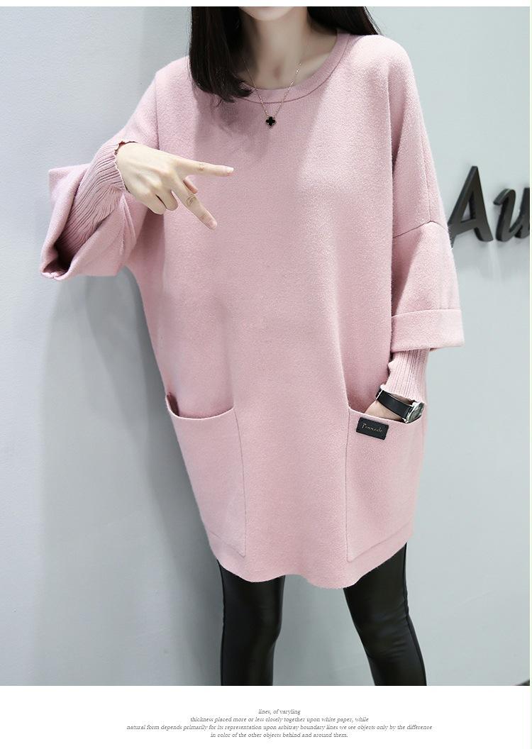 Suéter de cuello redondo para mujer, ropa de otoño, talla grande, gordita, manga larga, holgado, color liso, largo medio