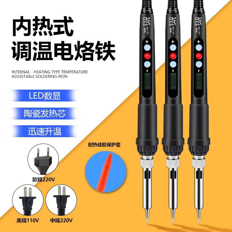 Soldador termostático estándar europeo 60W soldador de temperatura constante estándar estadounidense azul doméstico pequeño juego de soldador termostático de mano