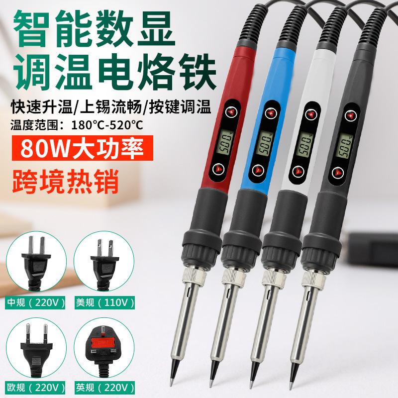 Cautín eléctrico digital de 110v con pantalla digital y temperatura ajustable, calentamiento interno, 80W, tipo lápiz, estándar estadounidense y europeo, fabricante mayorista