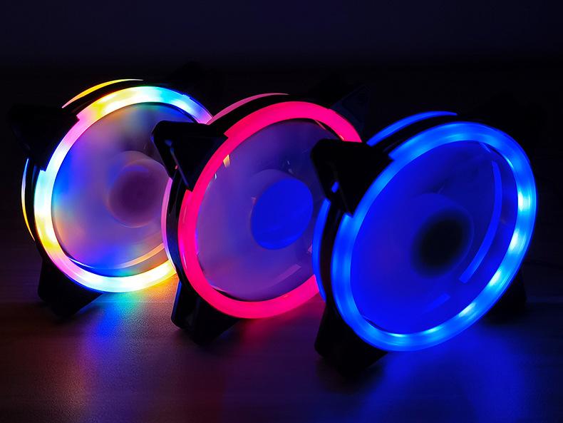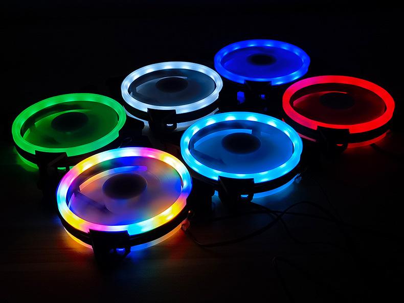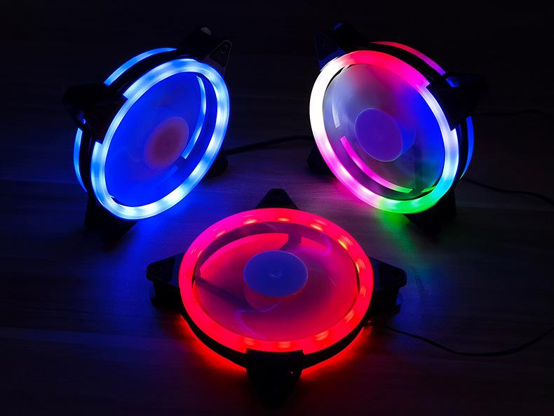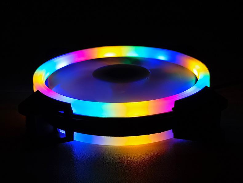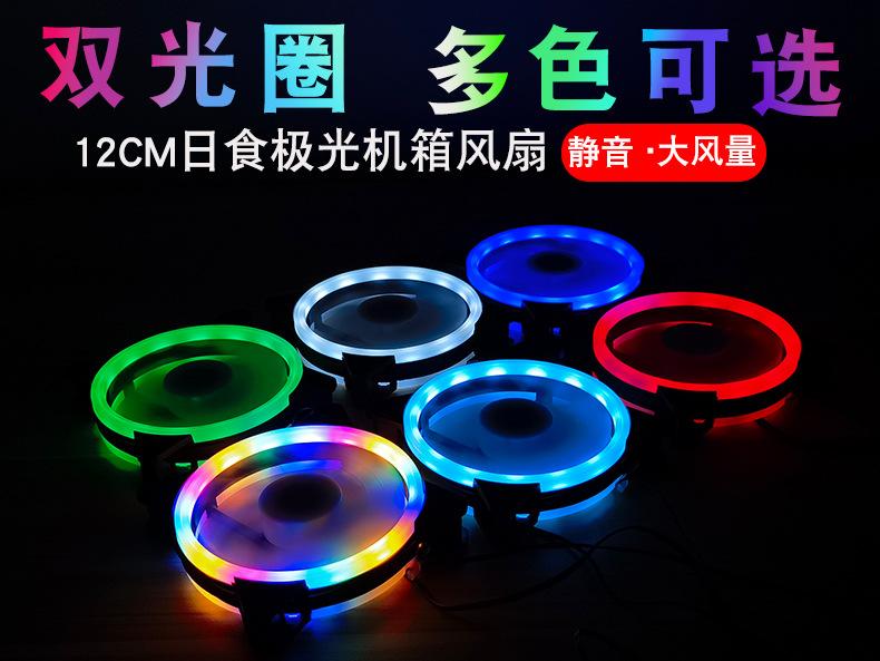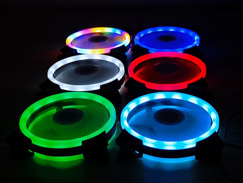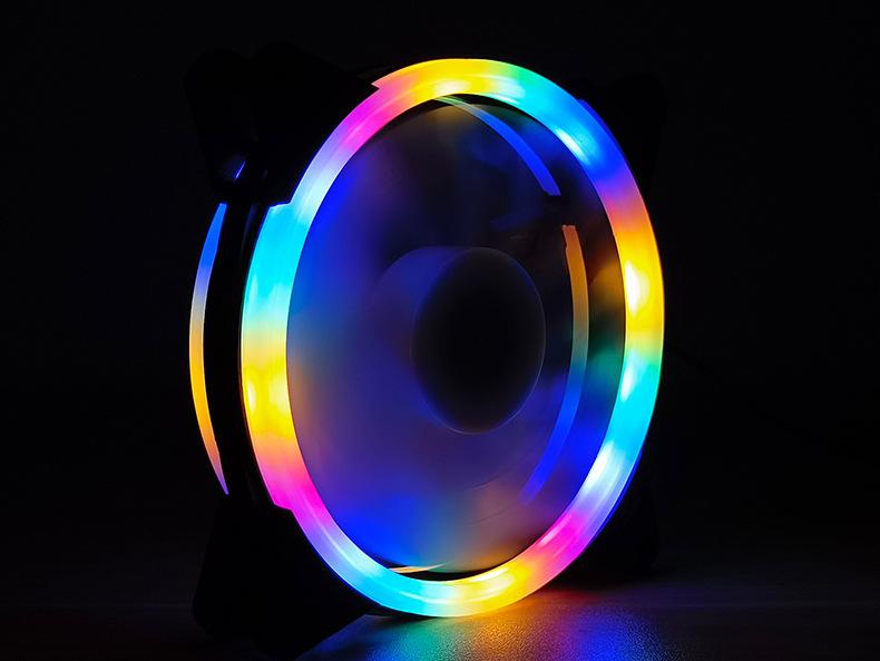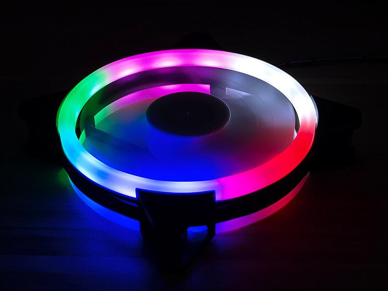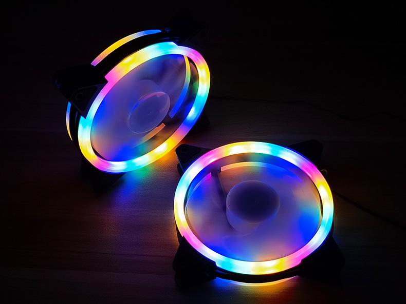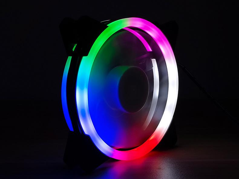 Ventilador de 12 cm con doble apertura y cambio de color, silencioso, para ordenador de escritorio, refrigerado por aire, con LED Aurora