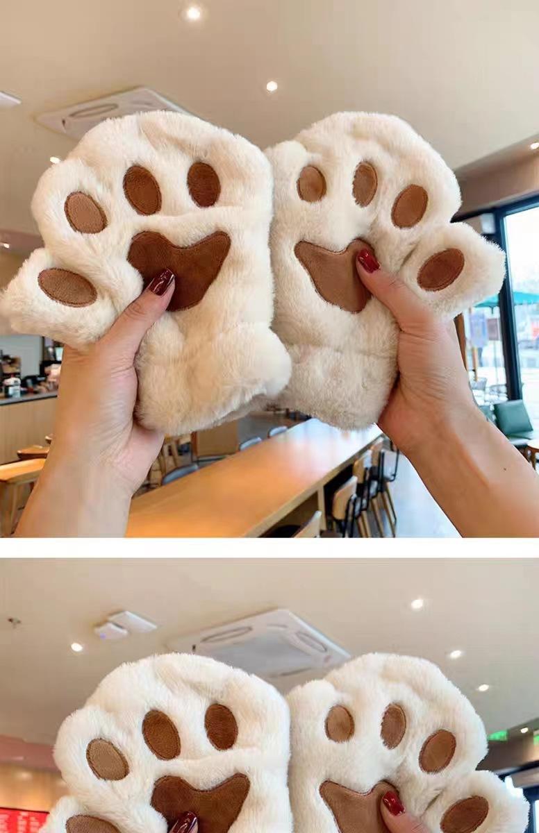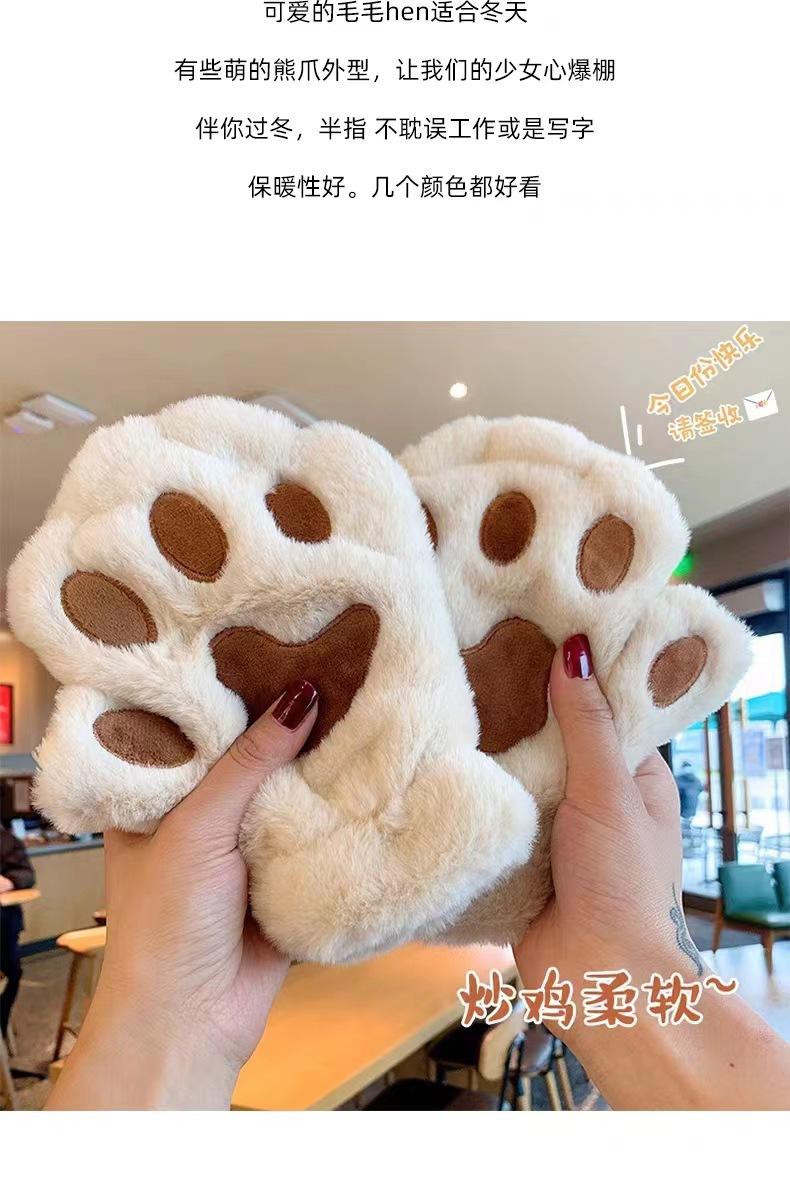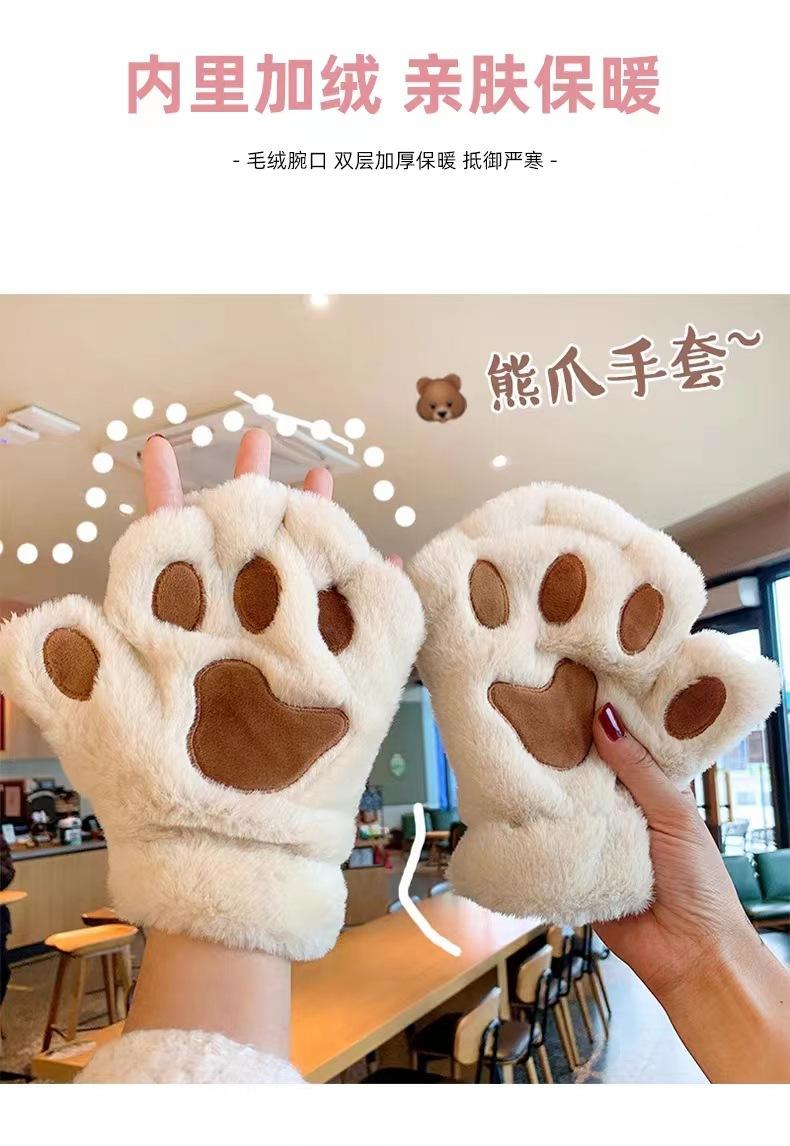 Guantes de medio dedo para mujer, de felpa de invierno, forrados de vellón, gruesos, cálidos y a prueba de frío, con palma de oso, bonitos guantes para estudiantes, para montar a caballo y escribir.