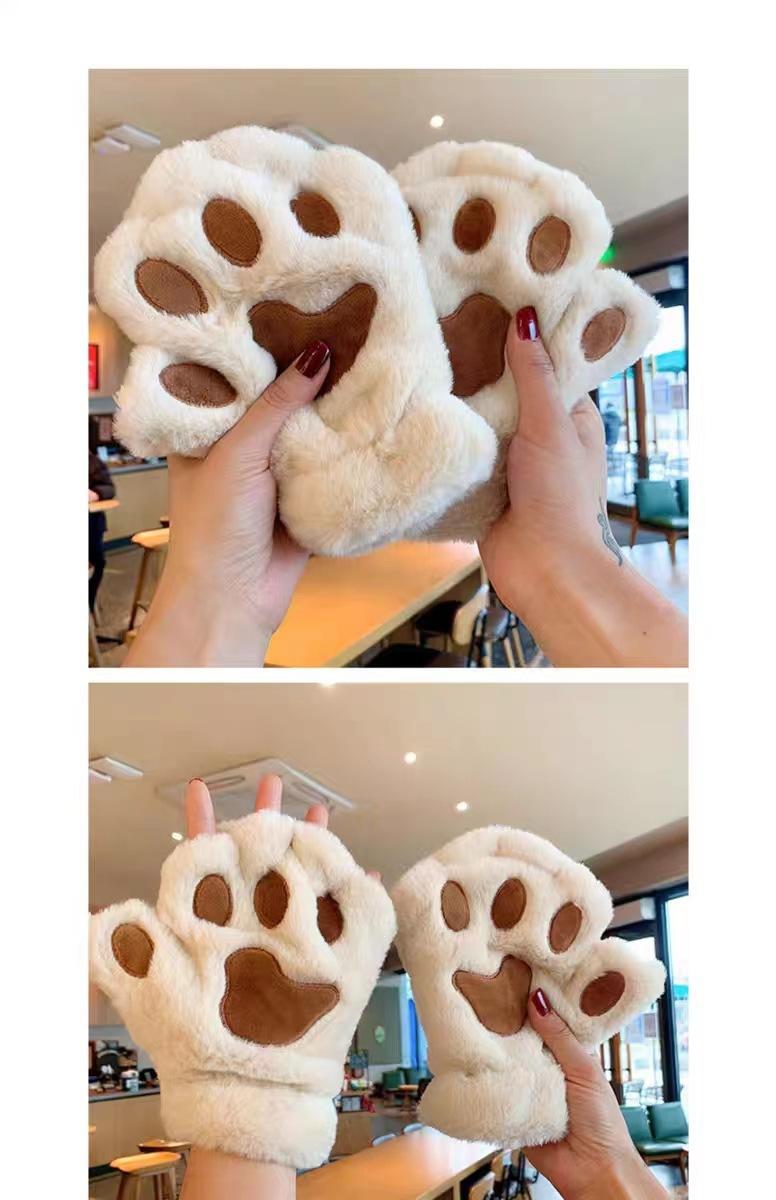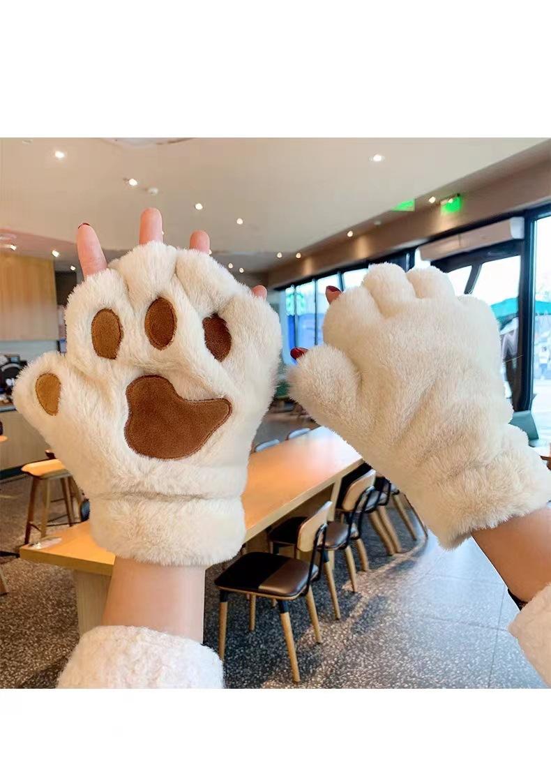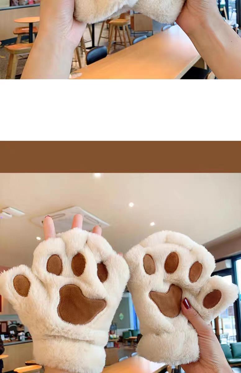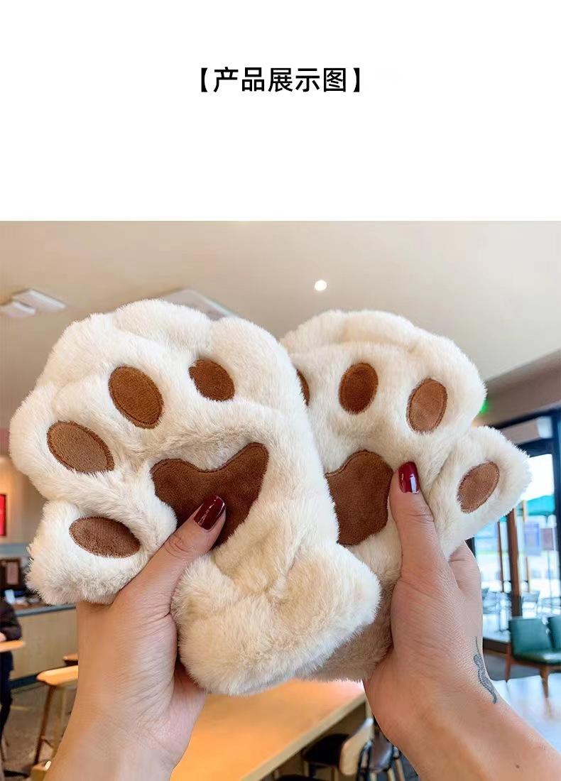Guantes de medio dedo para mujer, de felpa de invierno, forrados de vellón, gruesos, cálidos y a prueba de frío, con palma de oso, bonitos guantes para estudiantes, para montar a caballo y escribir.