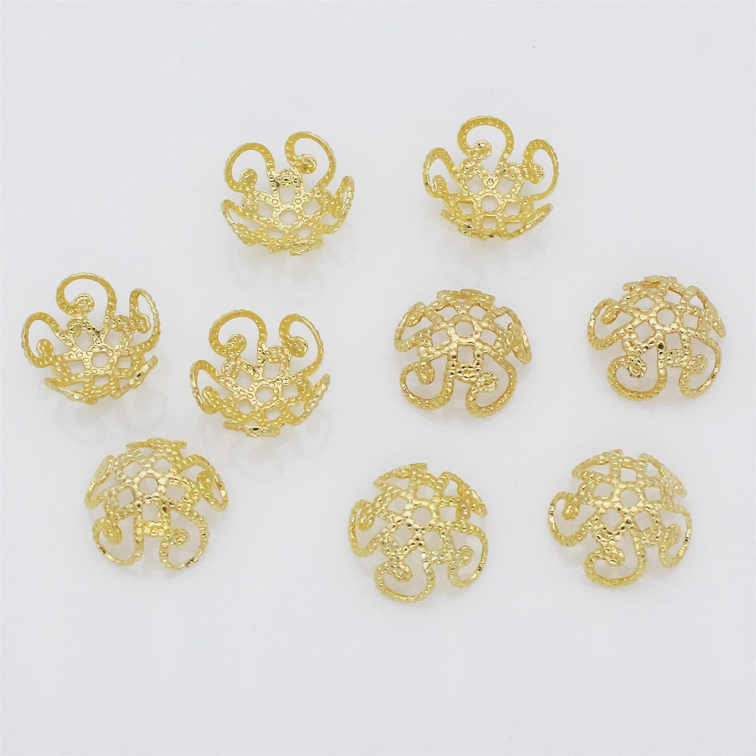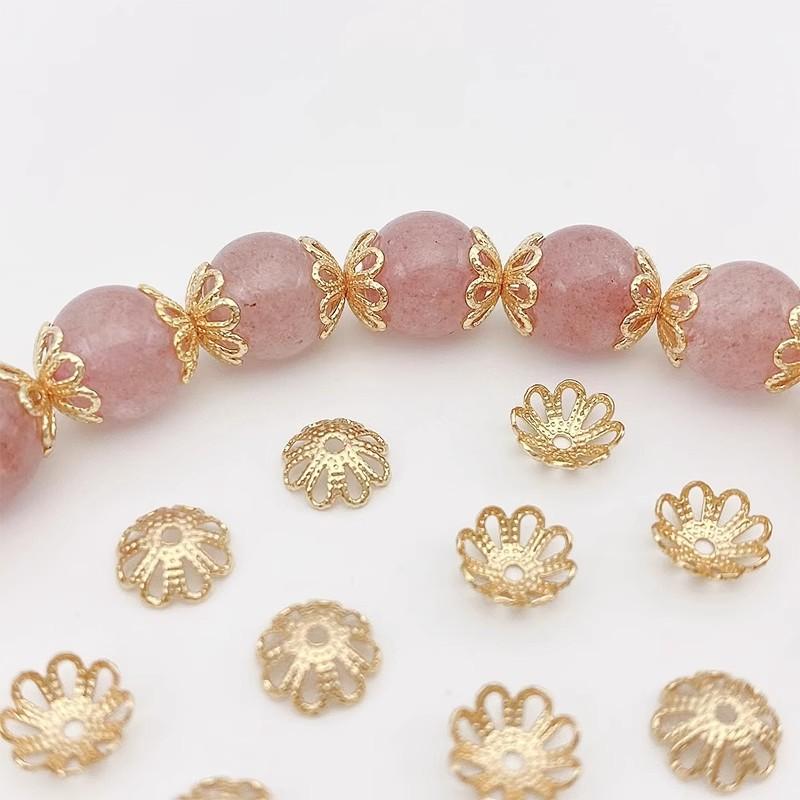 Soporte de flores hueco de oro de 24 quilates con retención de color, soporte de flores, soporte de cuentas, cuentas espaciadoras, accesorios de joyería de cuentas para bricolaje, pulsera espaciadora
