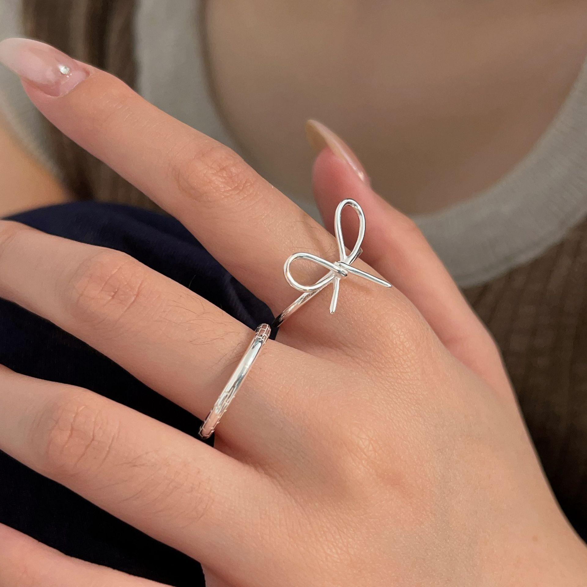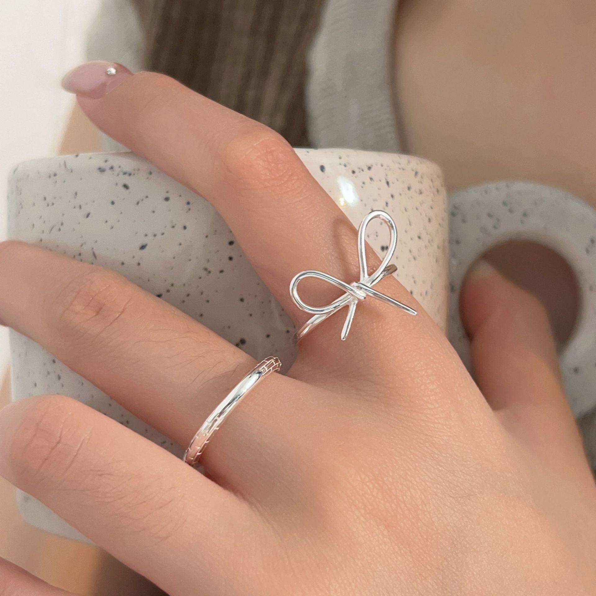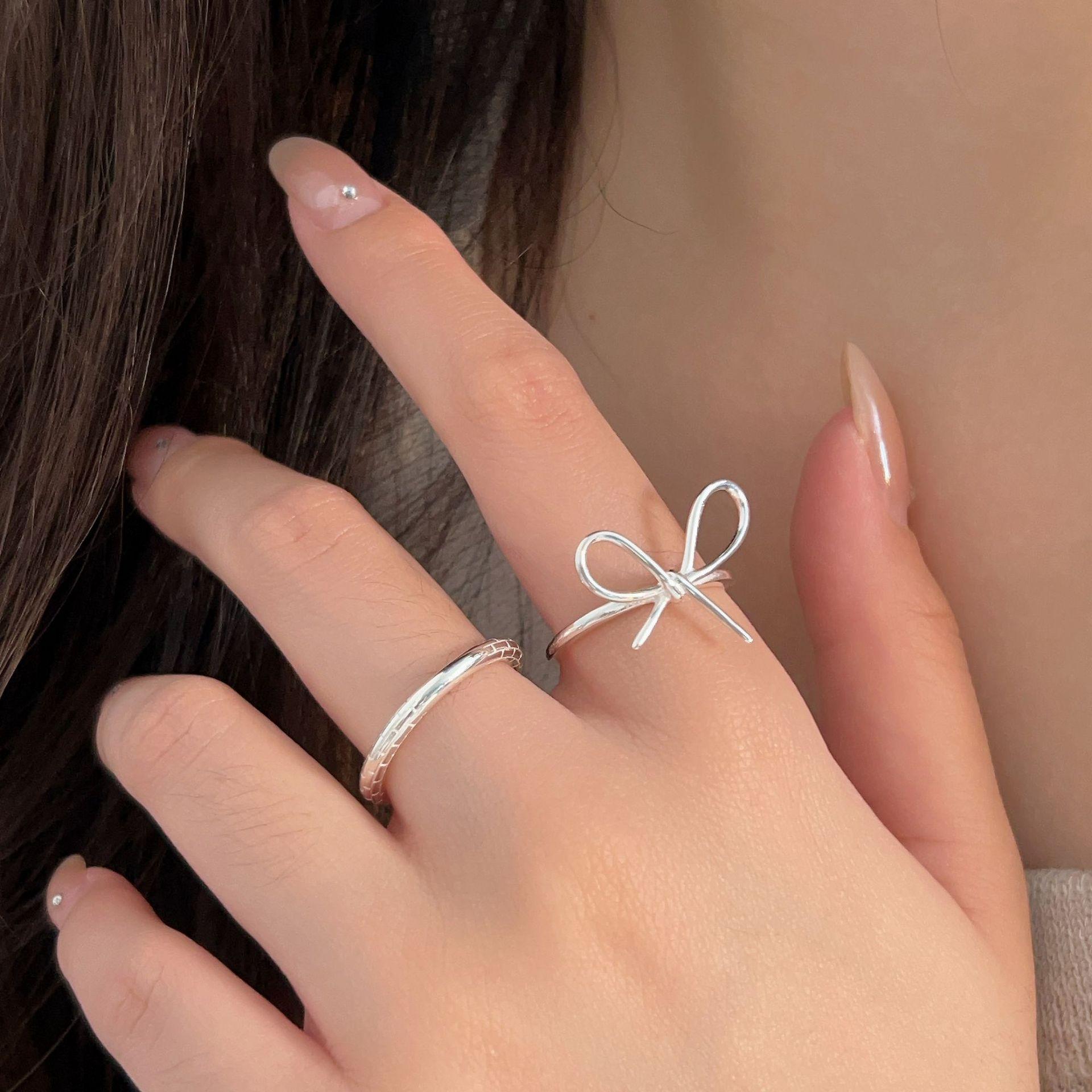 Anillo Abierto de Plata de Ley S925 Shuheng Lazo Normcore para Mujer Verano 2025 Nuevo Estilo Personalizado Simple Liso