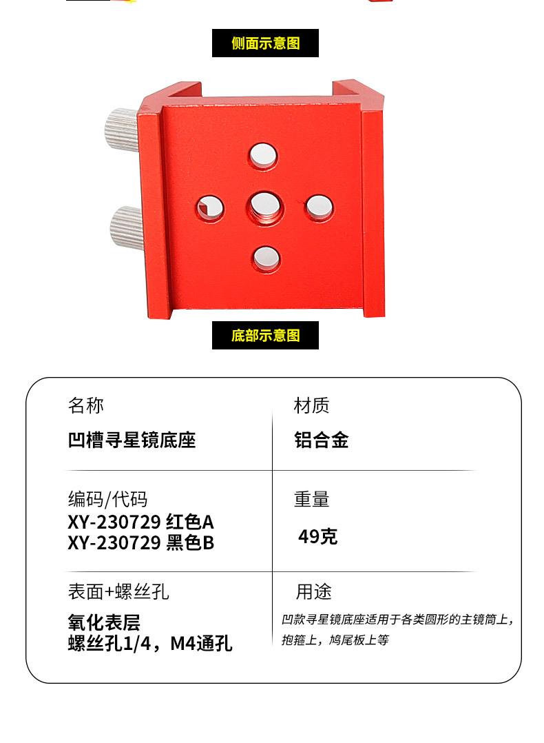 Estrella ranura de borde estrella Base de espejo ranura de cola de milano placa de cola de milano rosca 1/4 accesorios de telescopio astronómico de metal modificado