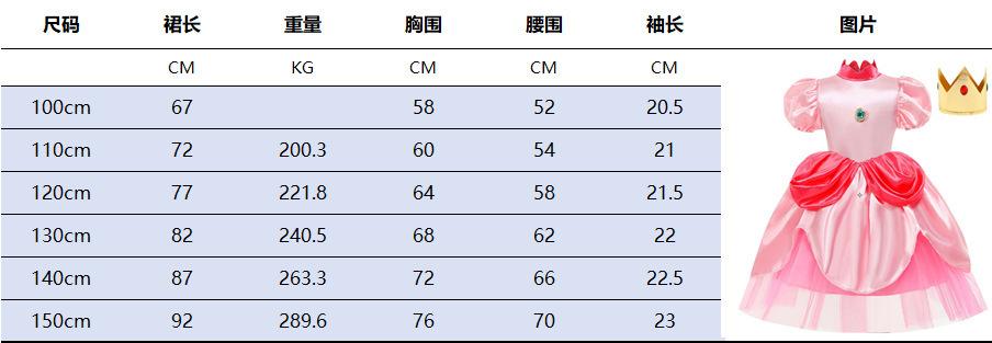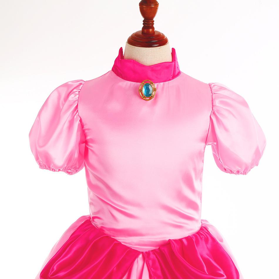 Ropa de juego de Super Mario para niños, vestido de princesa Biqi de melocotón rosa navideño, ropa de Halloween melocotón