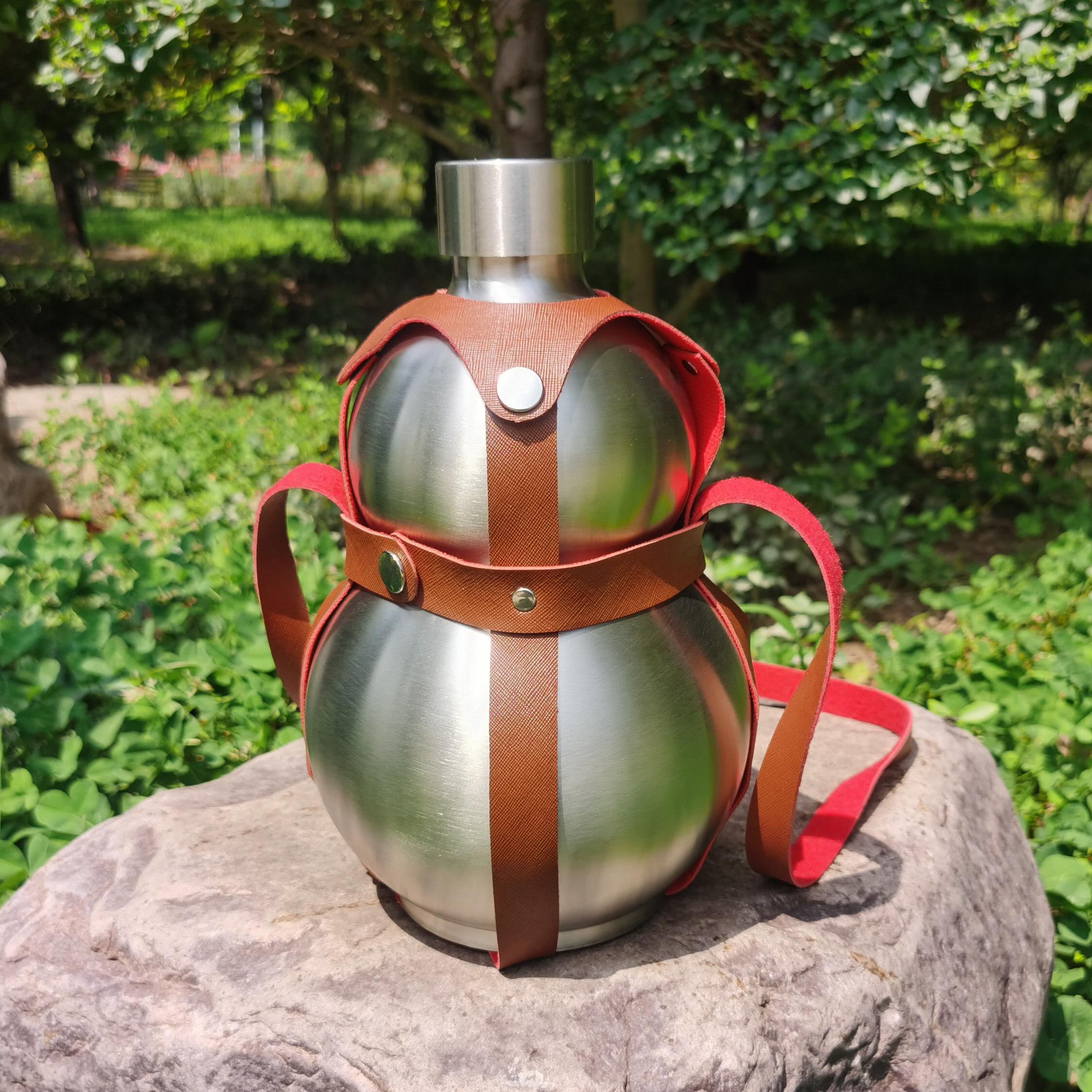 Natural color half jin gourd leather case, 1kg natural color gourd with holster funnel wine glass, 2kg natural...