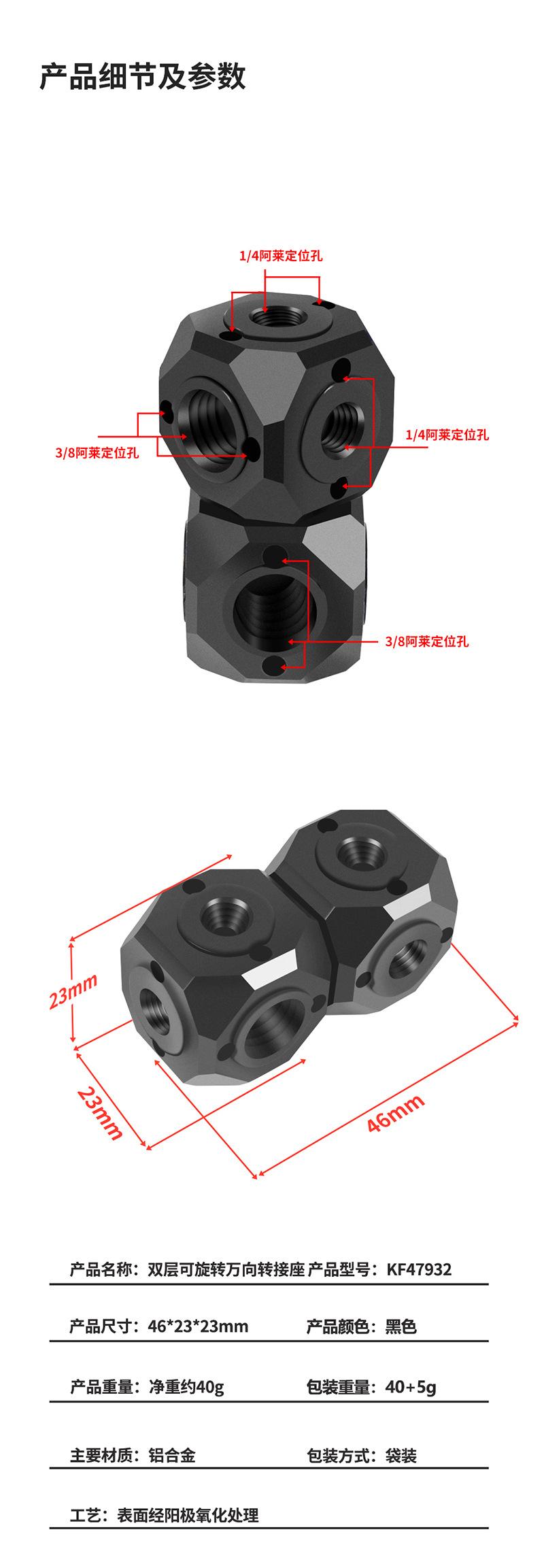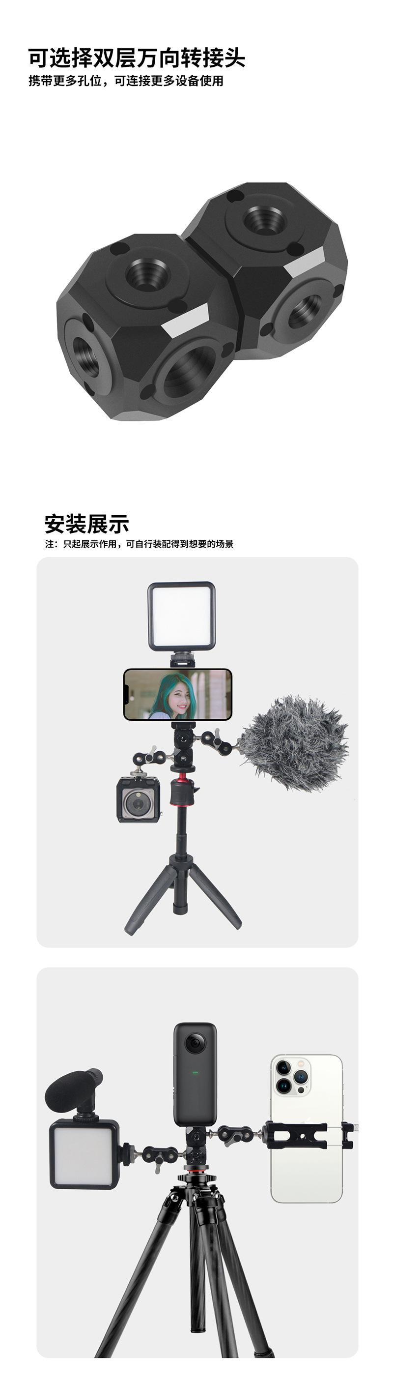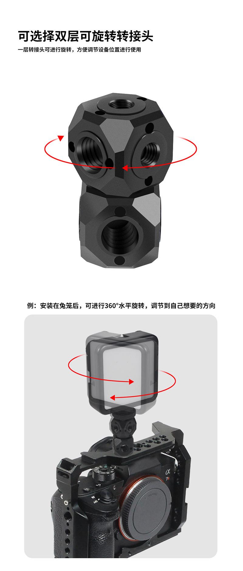 Adaptador de cámara Feichao con giro e inclinación universal de 1/4", rotación de 3/8" y orificio para múltiples tornillos, conversión de micrófono.