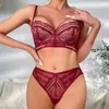 Conjunto de sujetador de encaje sexy para mujer, cómodo, fino y de talla grande