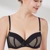 Conjunto de sujetador de media copa, sexy, de encaje, ultrafino, transparente, sin relleno