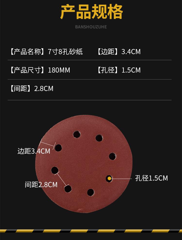 Papel de lija redondo de 7 pulgadas y 8 agujeros, papel de lija, masilla, flocado autoadhesivo para pared, máquina pulidora de pared, herramienta especial
