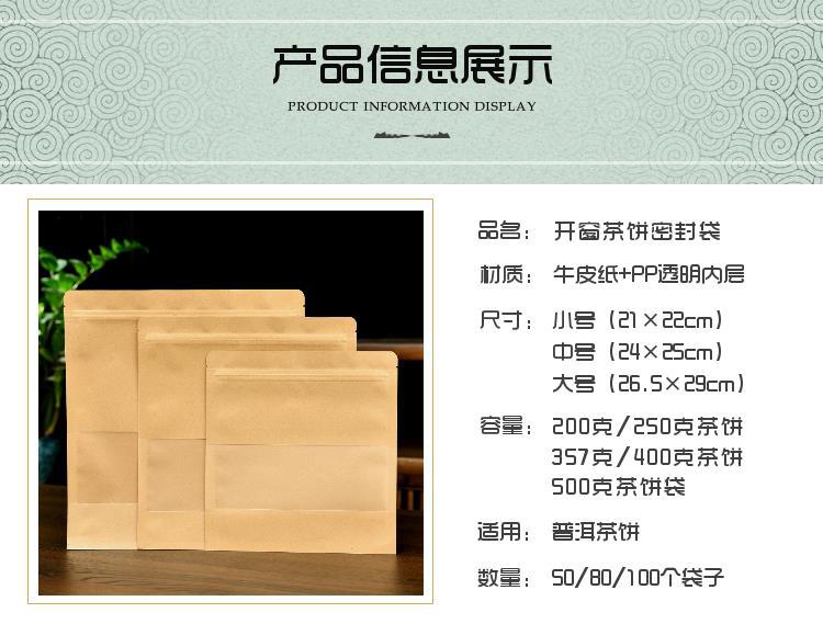 Bolsa de embalaje de té, té blanco, té Pu'er, bolsa con cierre hermético a prueba de humedad, papel Kraft, bolsa de almacenamiento universal, bolsa sellada para almacenamiento de pasteles de té