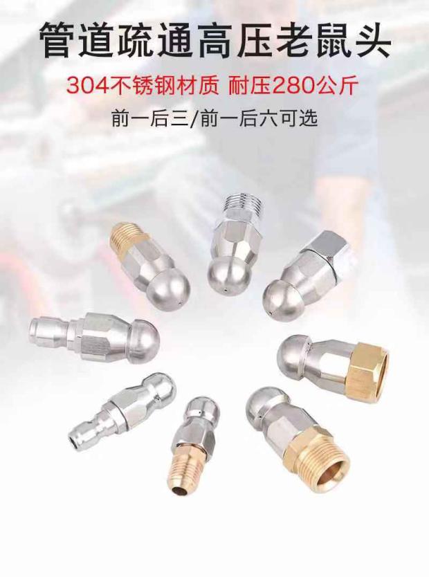 Boquilla de alta presión para rociar agua en la parte delantera y trasera del ratón, tres veces la tubería, boquilla de dragado de lavado, accesorios para máquina de limpieza, cabezal del ratón