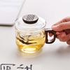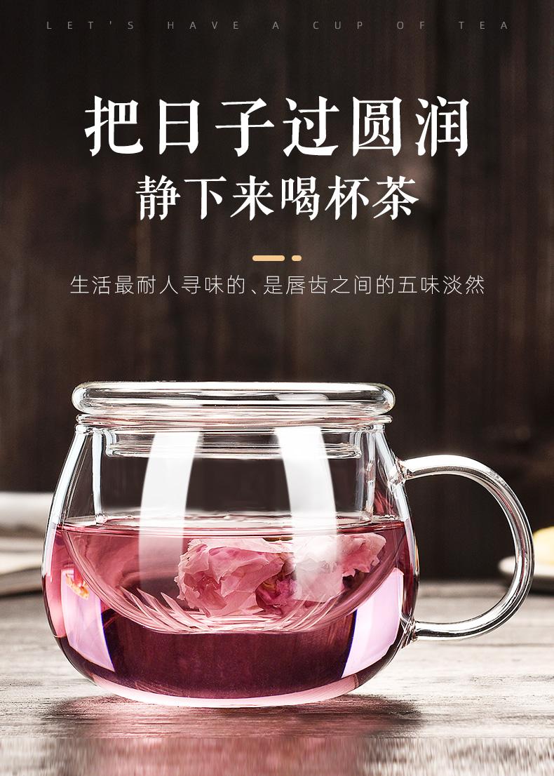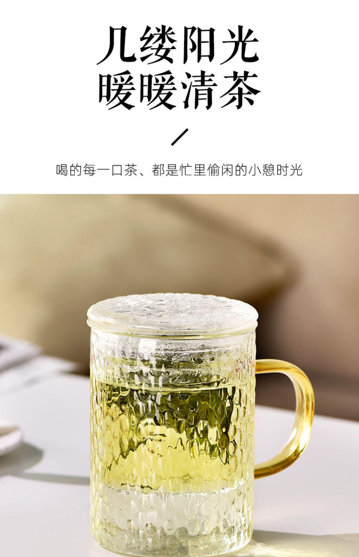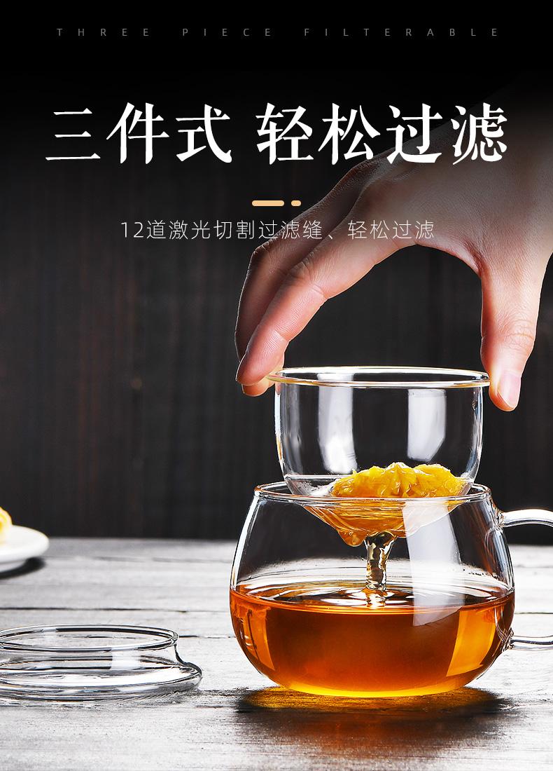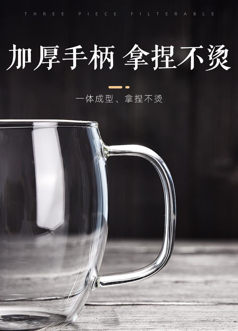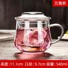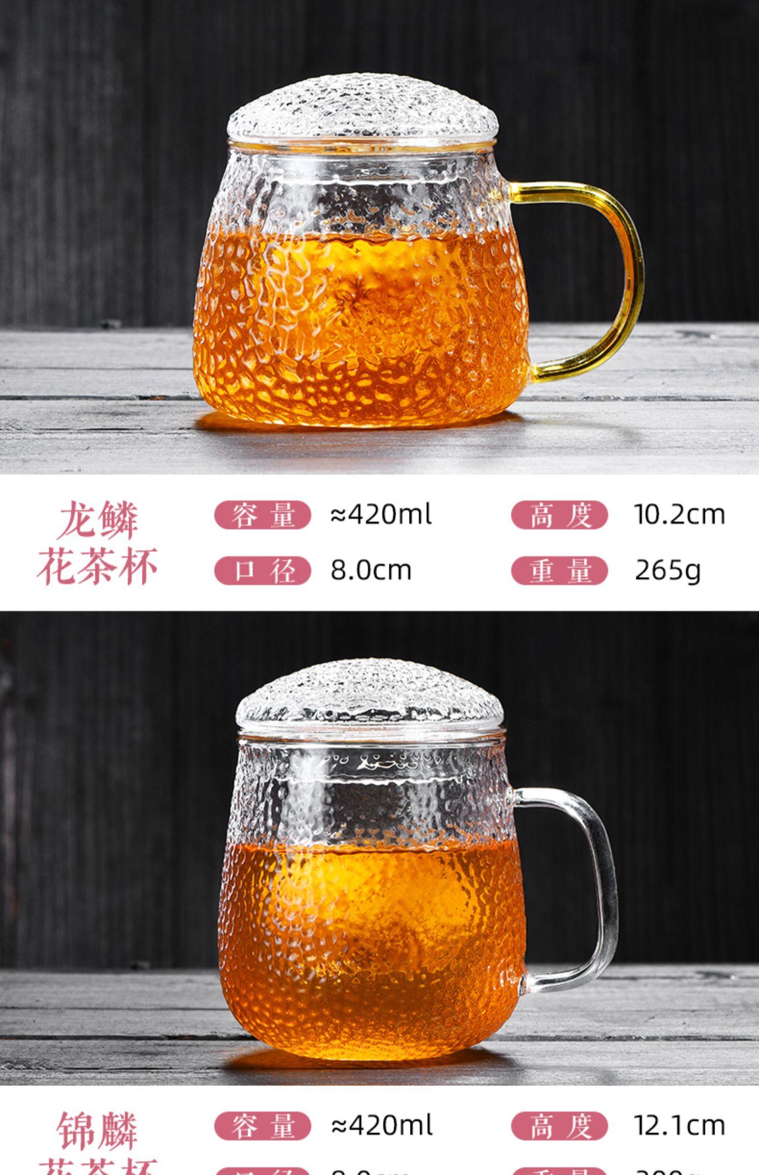 Taza de té de vidrio resistente al calor con forma de flor, transparente, para el hogar, con tapa con asa, con filtro separador de té espesado para oficina.