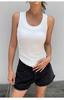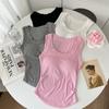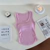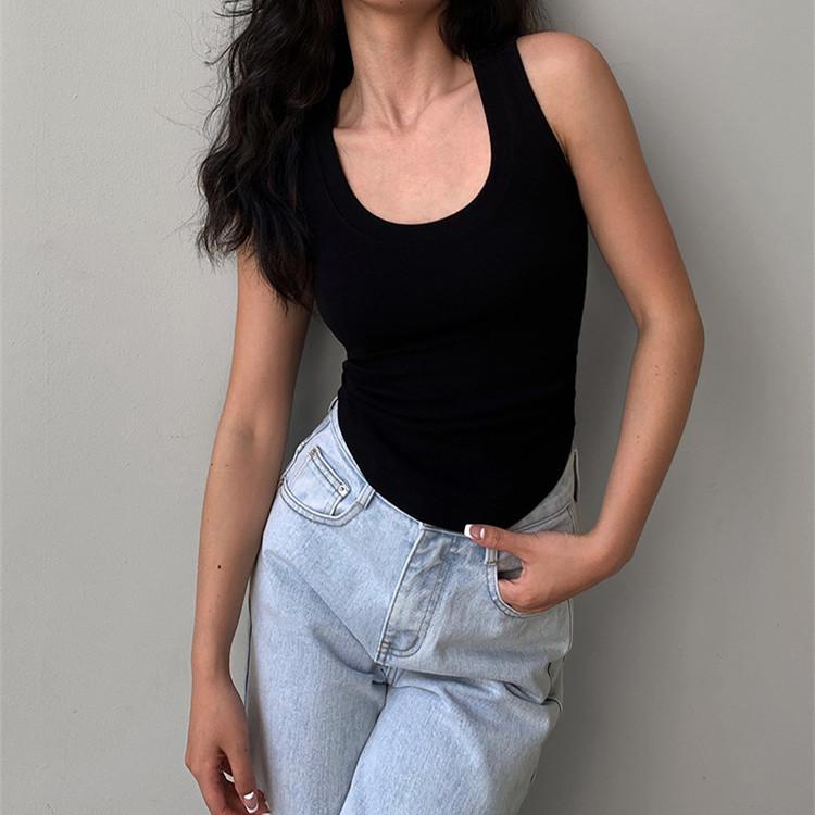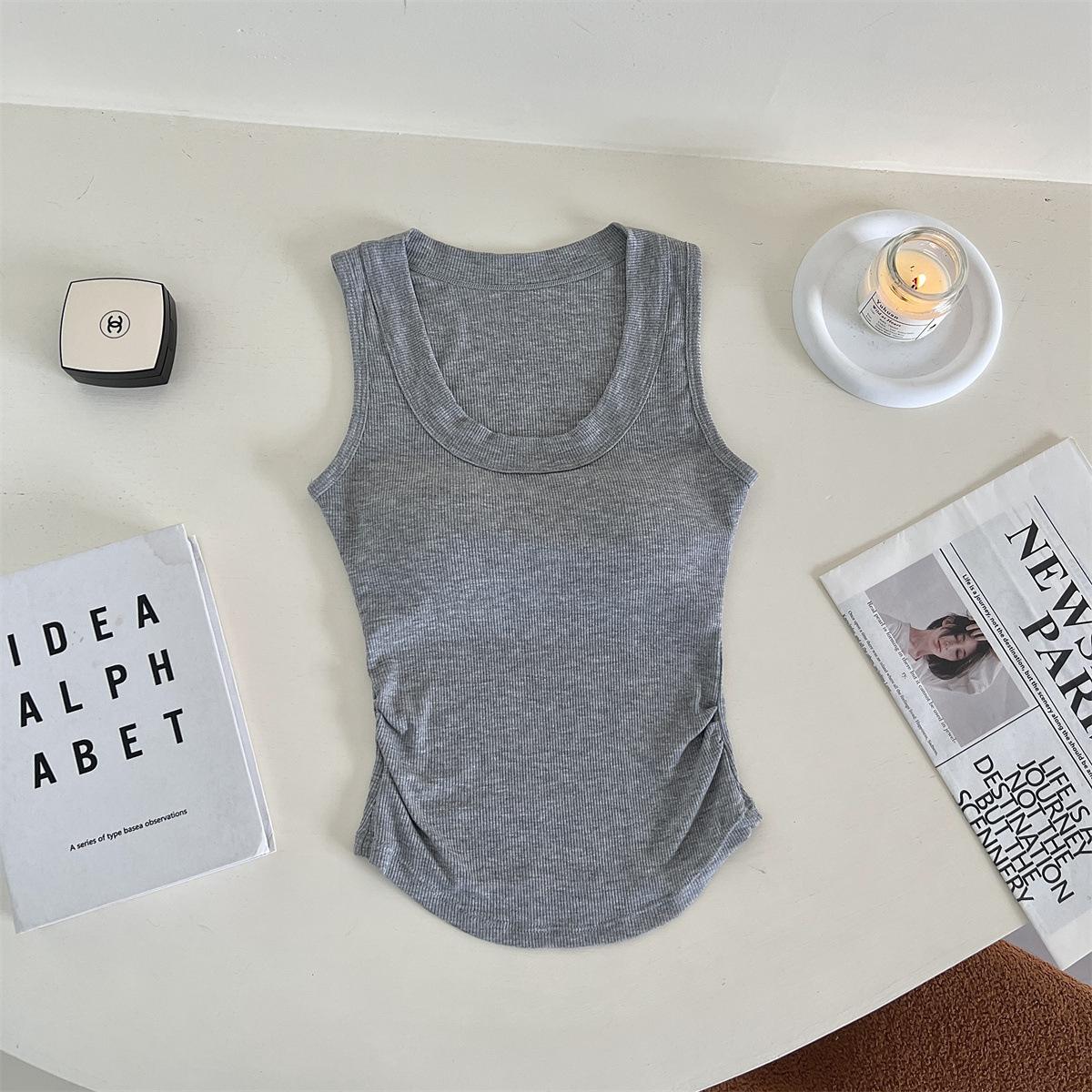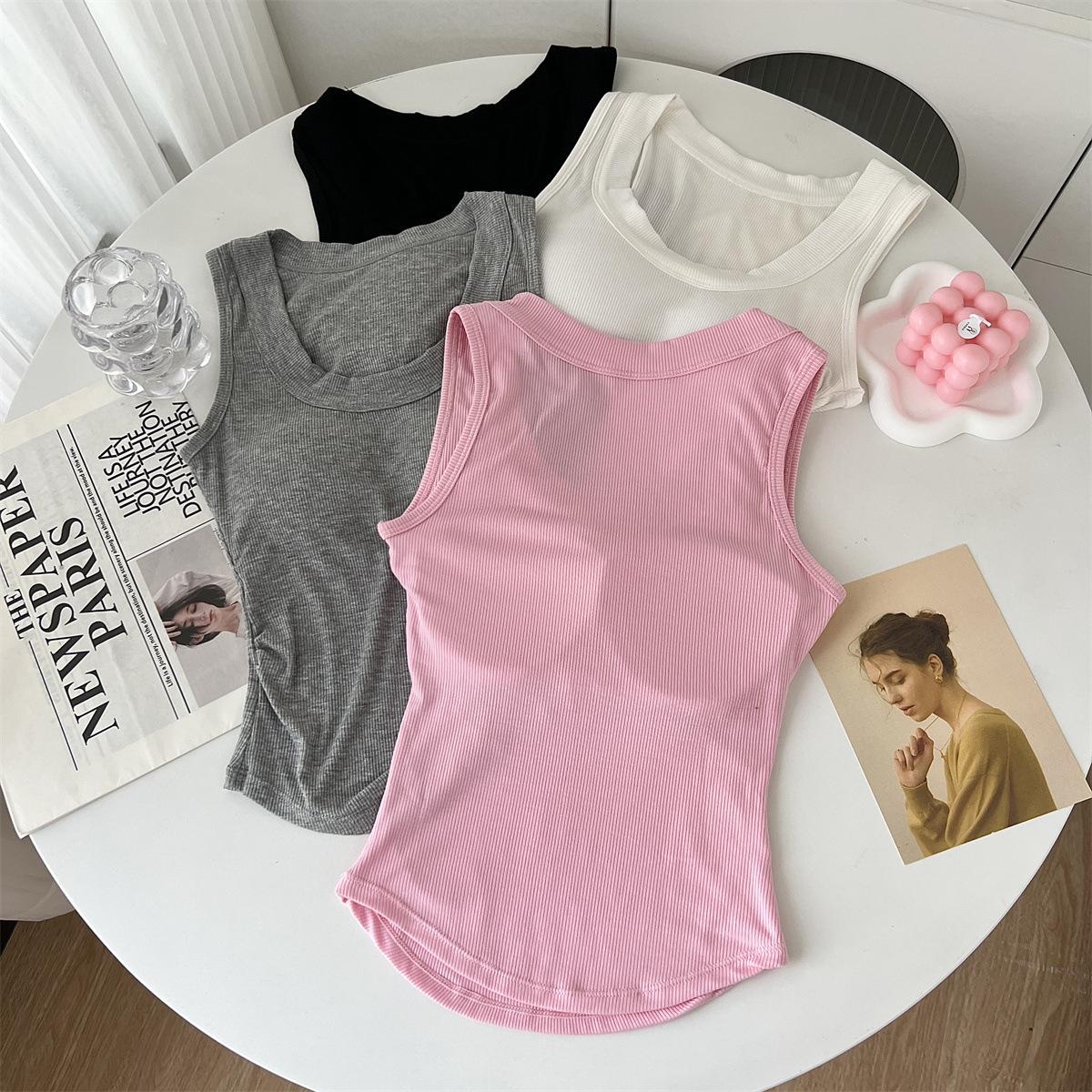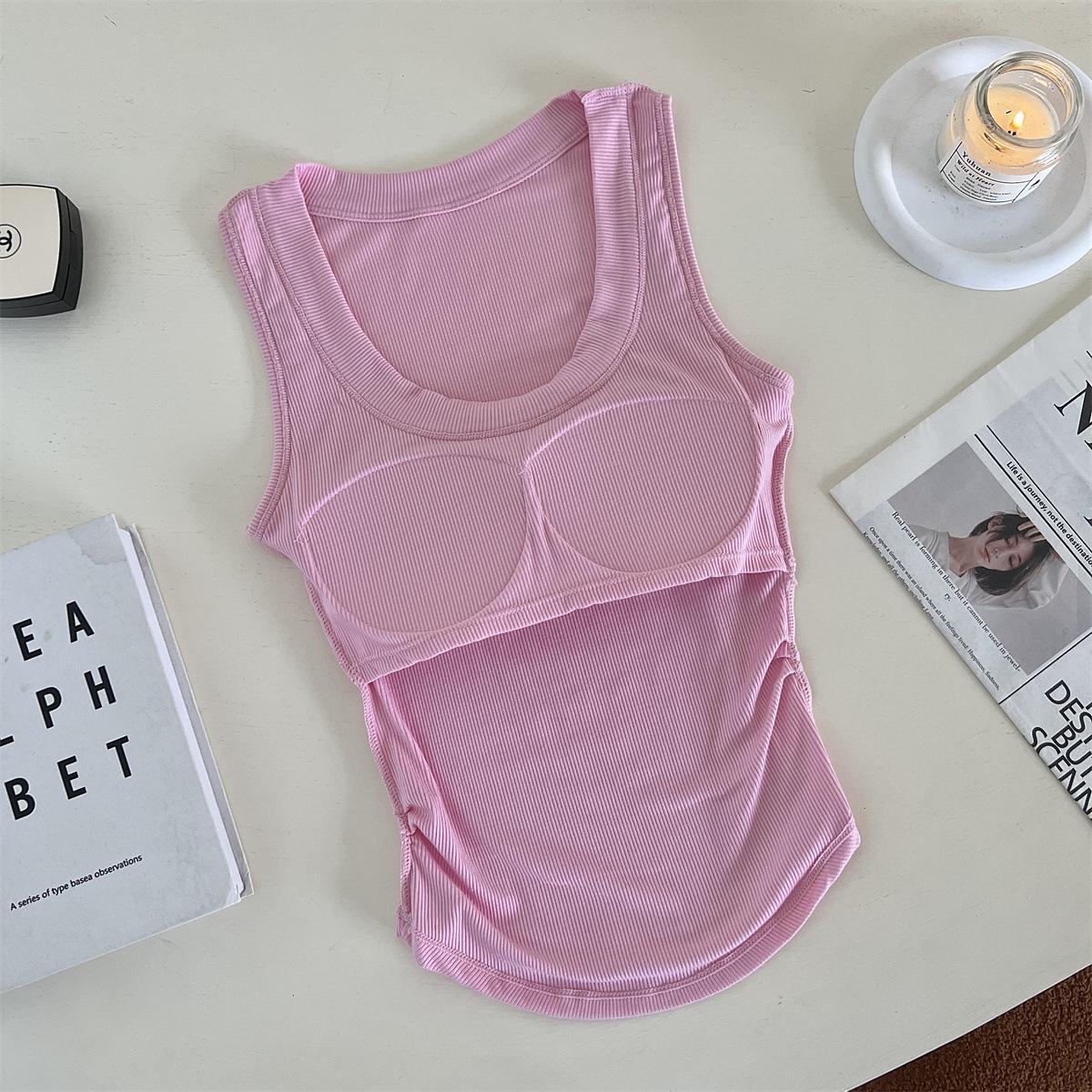 Chaleco básico de color liso con cuello en U y almohadilla para el pecho, estilo americano, estilo chica sexy, diseño de cintura plisada, sin mangas para mujer