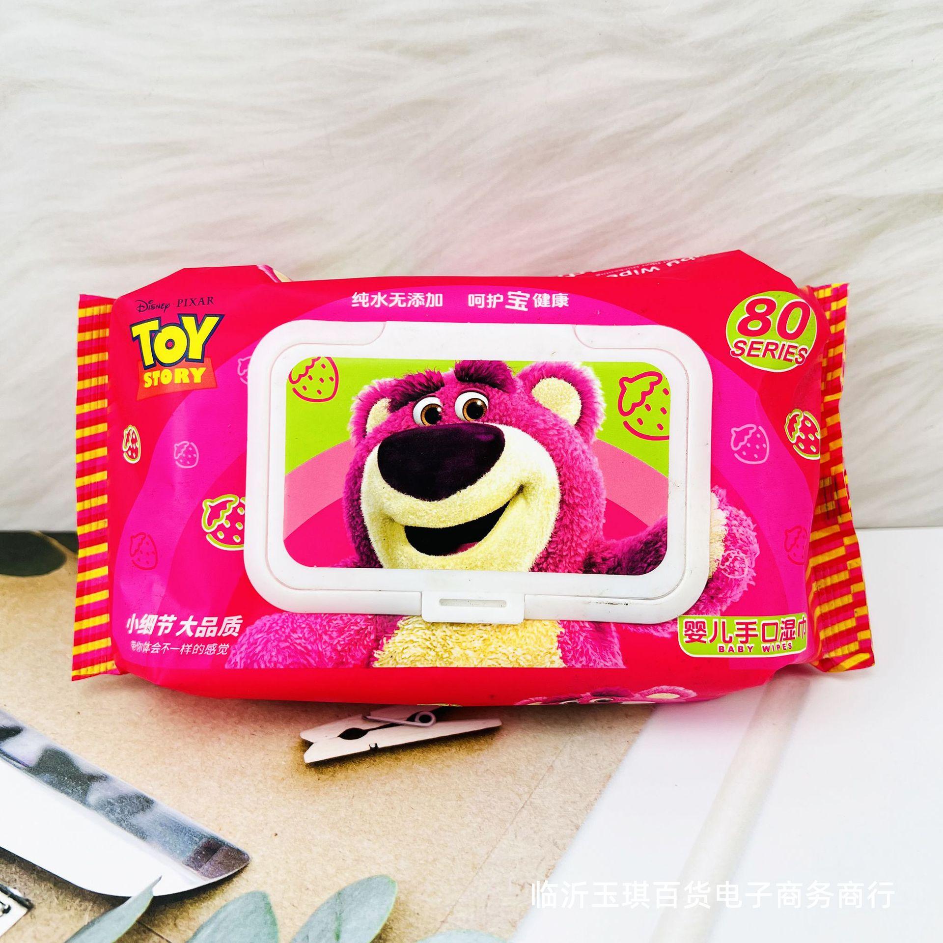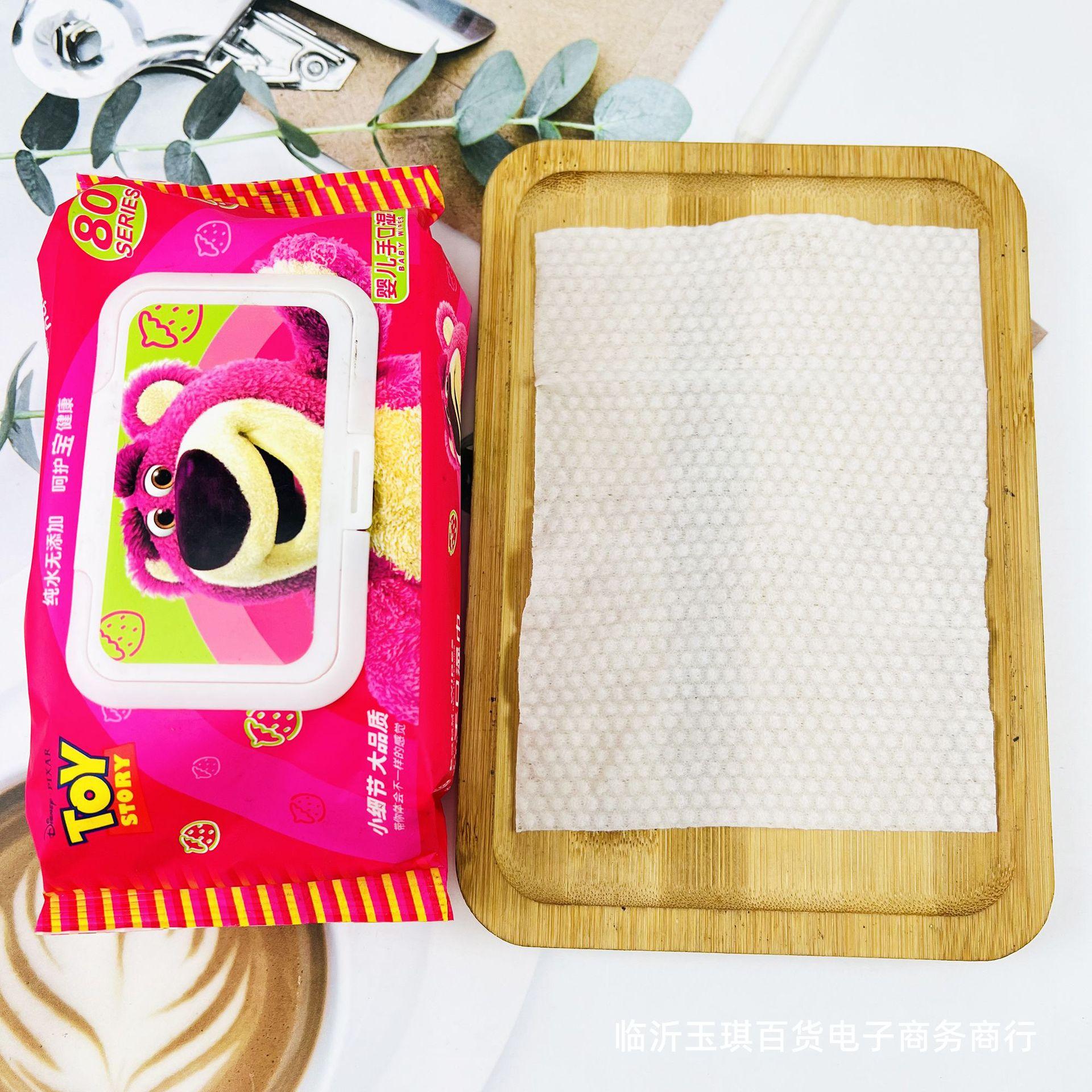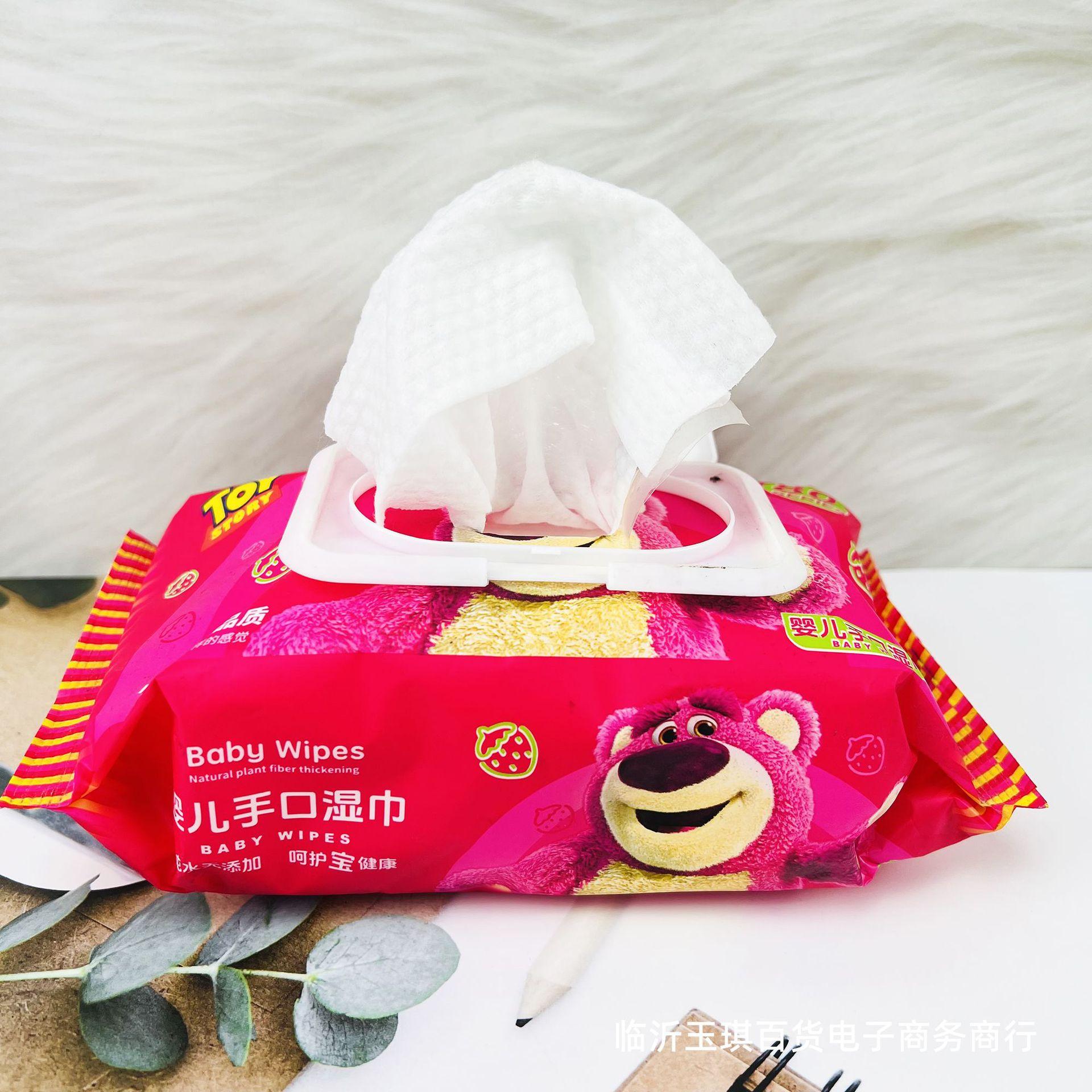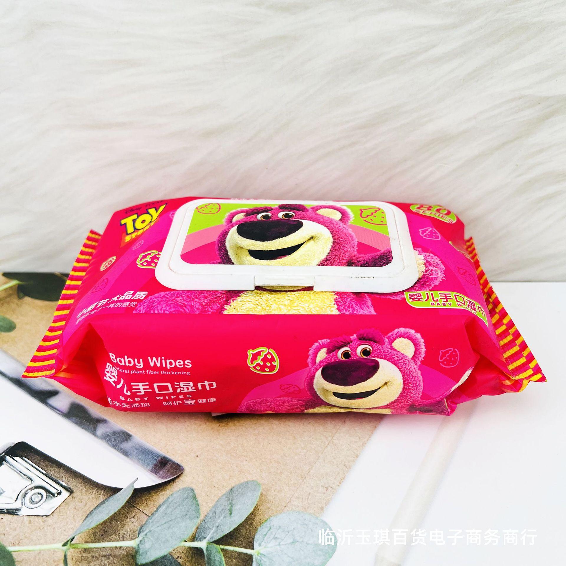 60 toallitas húmedas desechables de algodón con diseño de oso de fresa, gruesas y de extracción, a un precio de dos yuanes, venta al por mayor.
