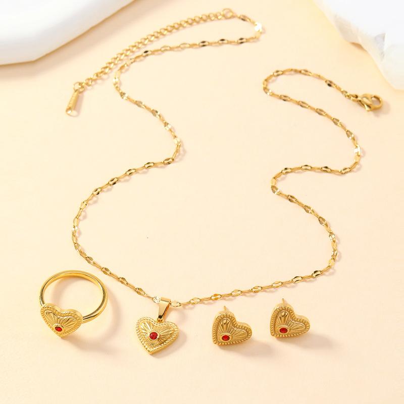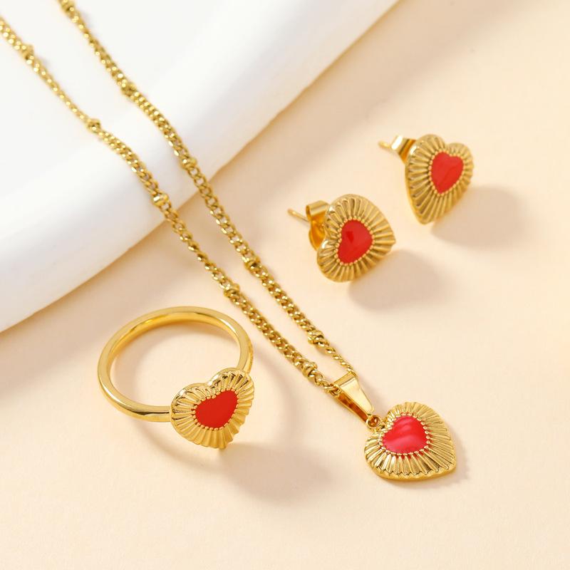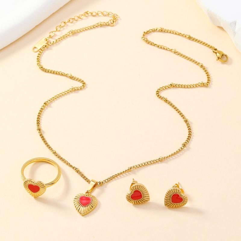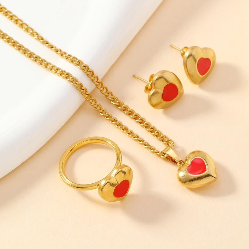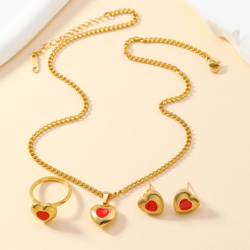 Collar y anillo transfronterizos europeos y americanos, moda femenina, collar y pendientes sencillos con gotas de aceite y amor, joyería de acero inoxidable para la mano.