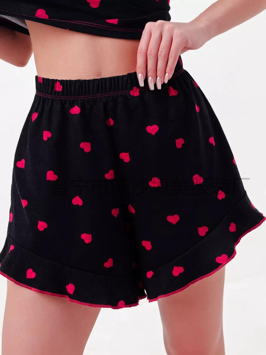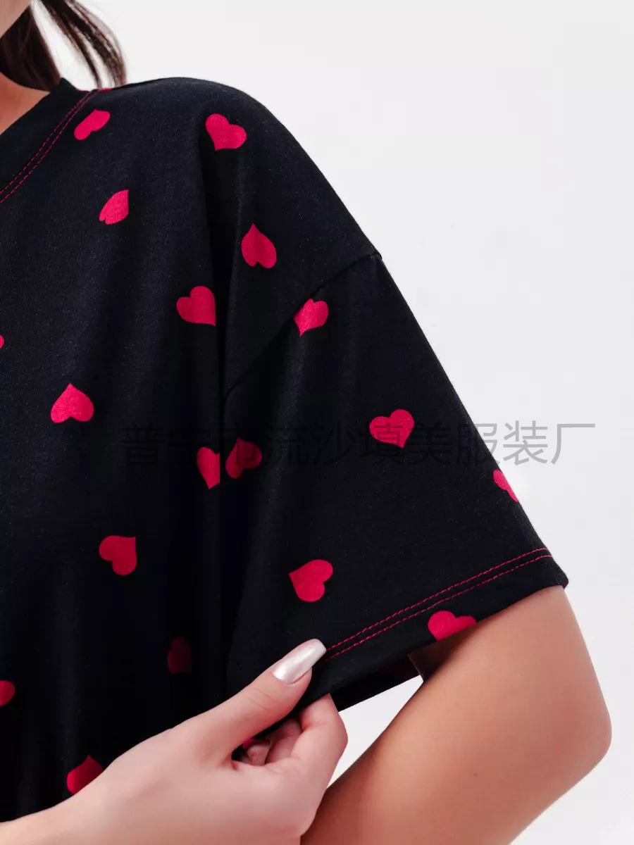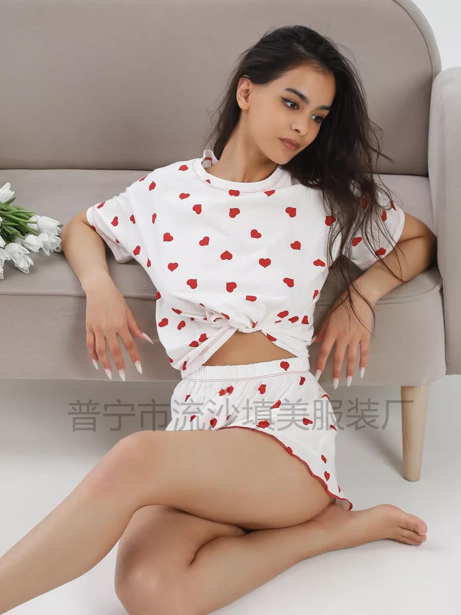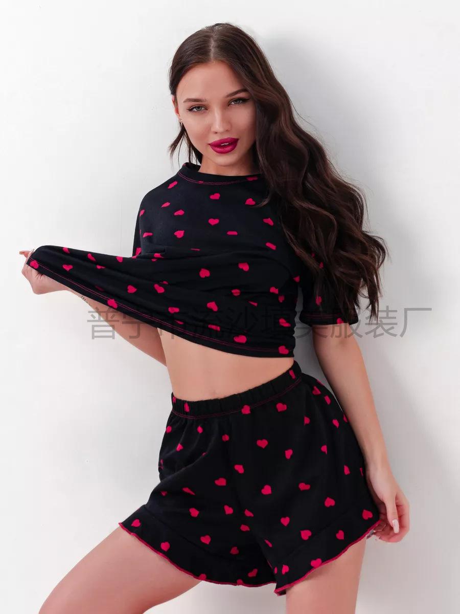 Conjunto de pijama de dos piezas para mujer, ropa de casa, cuello redondo, manga corta, estampado de amor transfronterizo, estilo europeo y americano