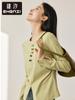 Zhen Xi Nueva Camiseta de Manga Larga con Cuello Redondo y Abertura Decorativa con Hebilla para Mujer, Moda Casual Nicho Top SP675