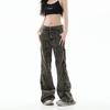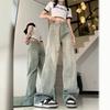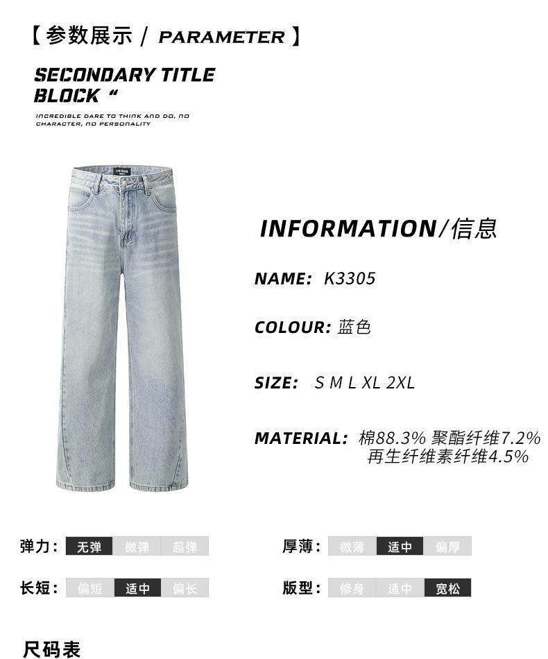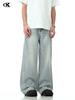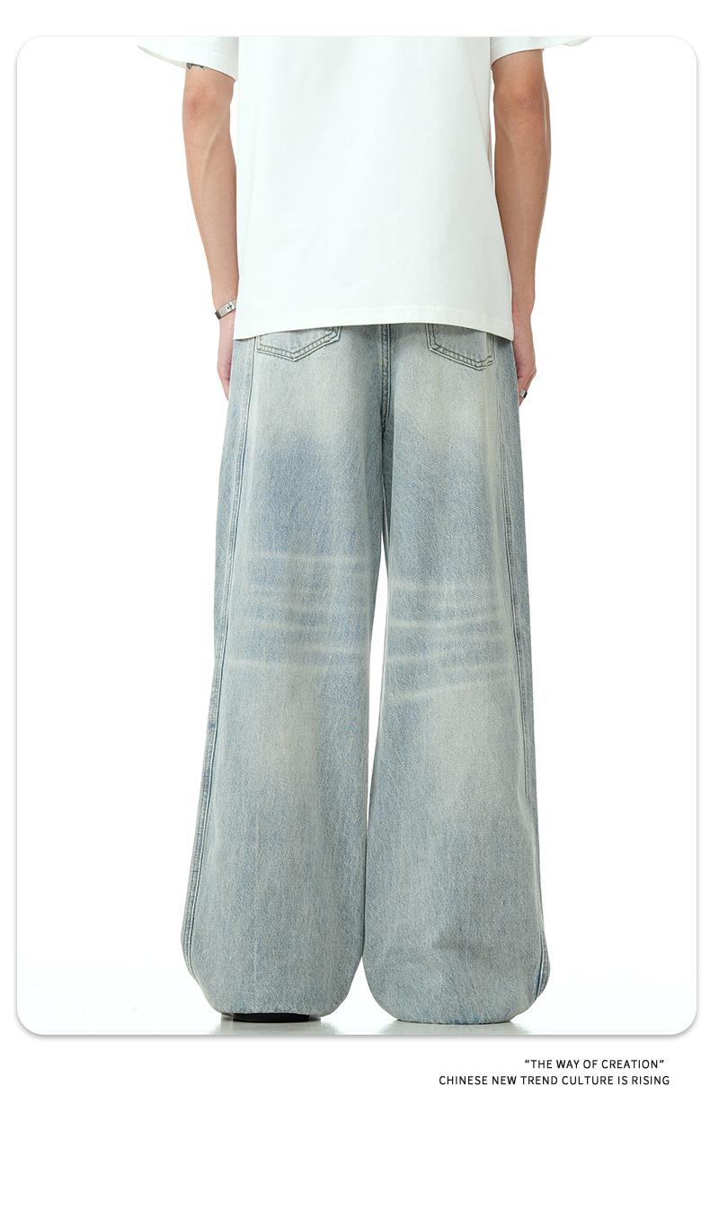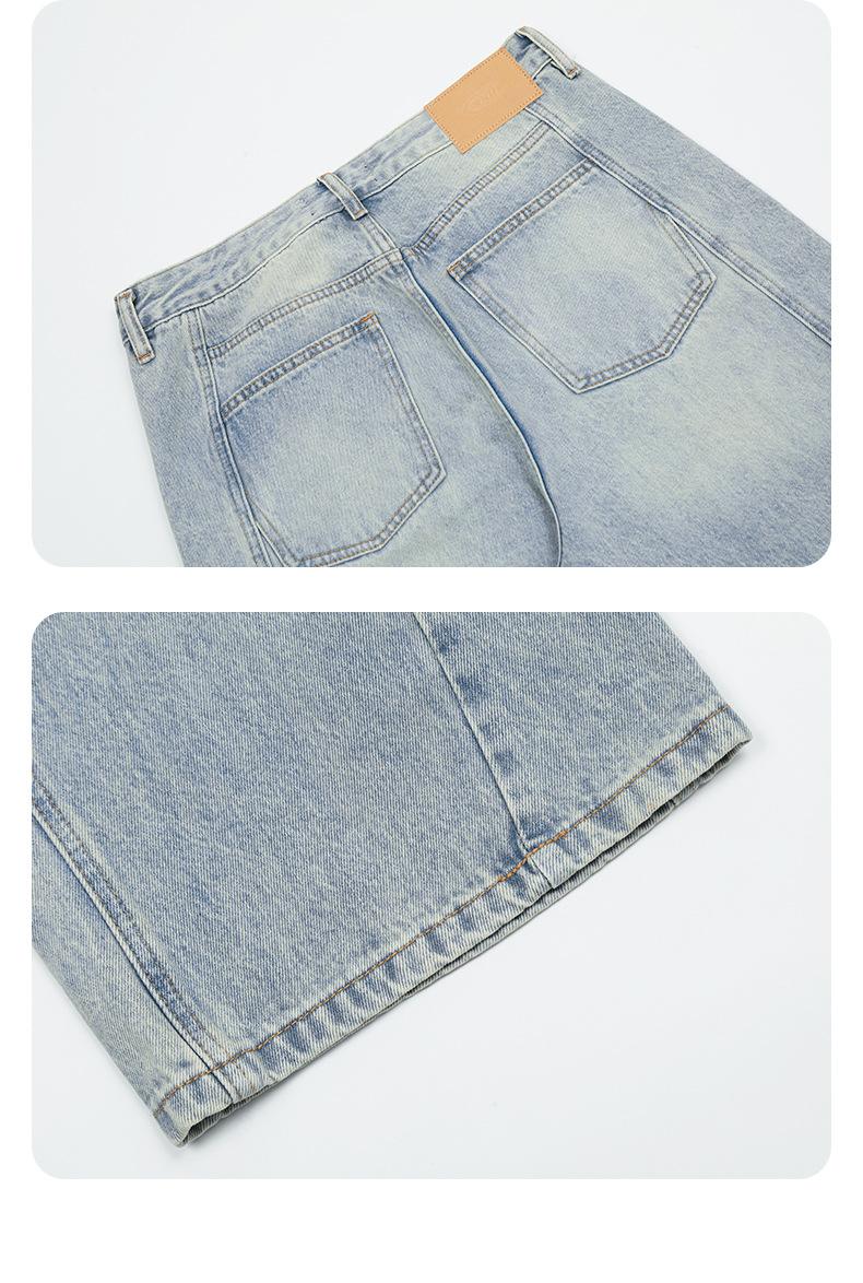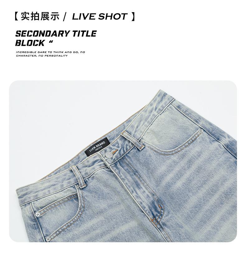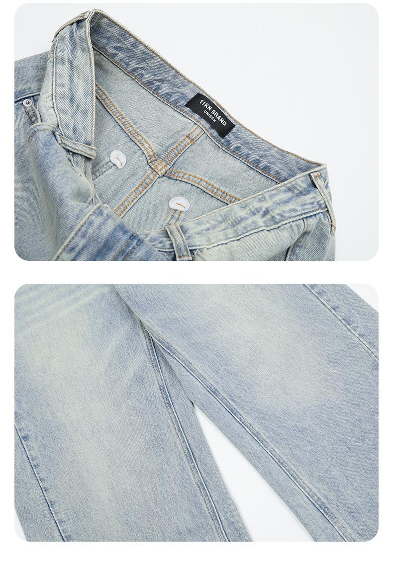 Pantalones vaqueros azules claros con lavado retro americano 11KN unisex, corte limpio, corte high street, corte recto, cuello acampanado, corte cruzado